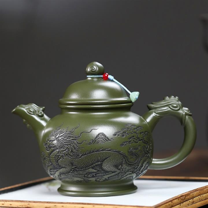 460cc原礦綠泥滿刻麒麟威風茶壺POT8079
