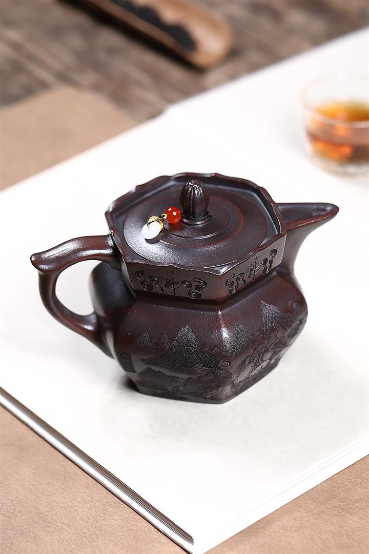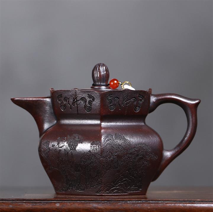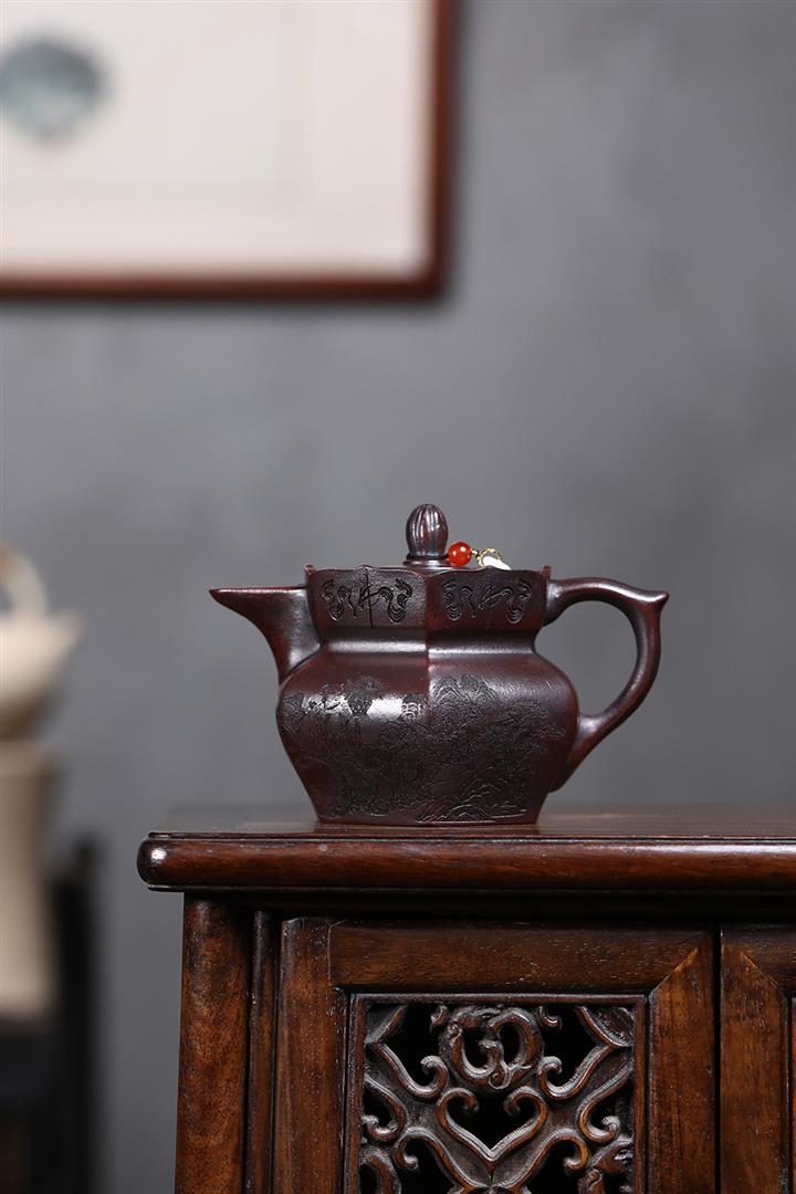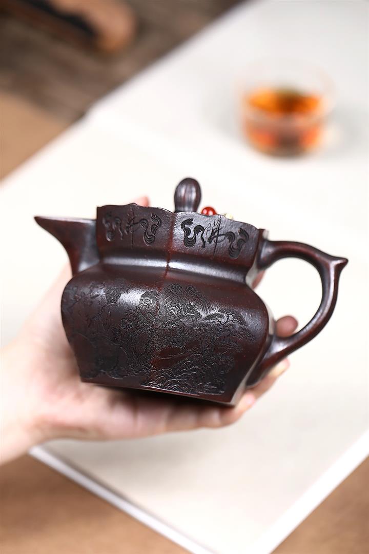 原礦鐵血紅砂八仙獻瑞茶壺POT7597