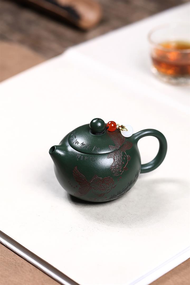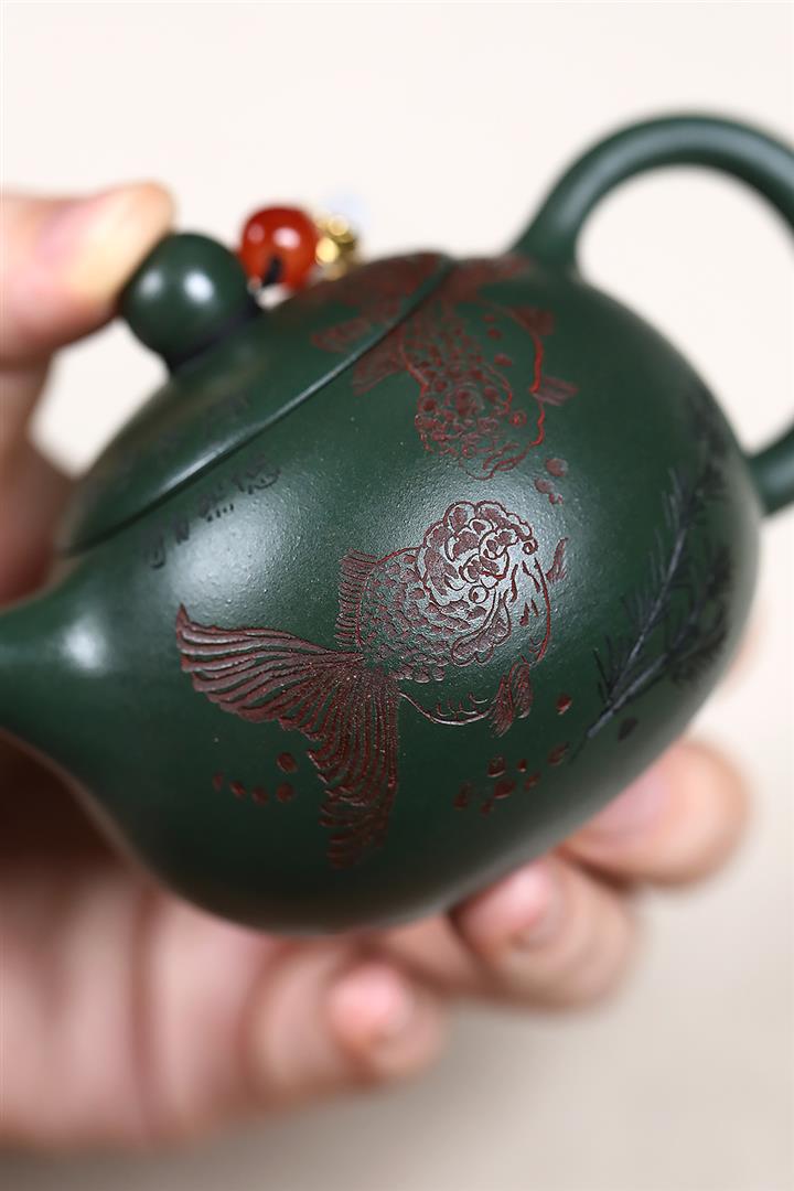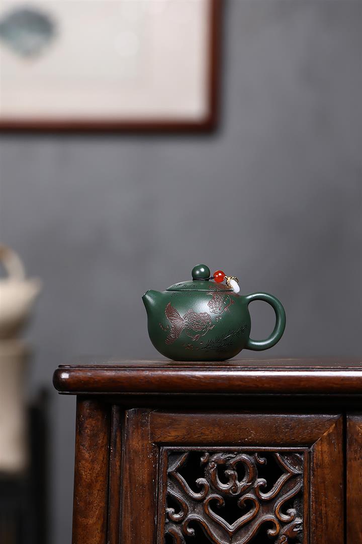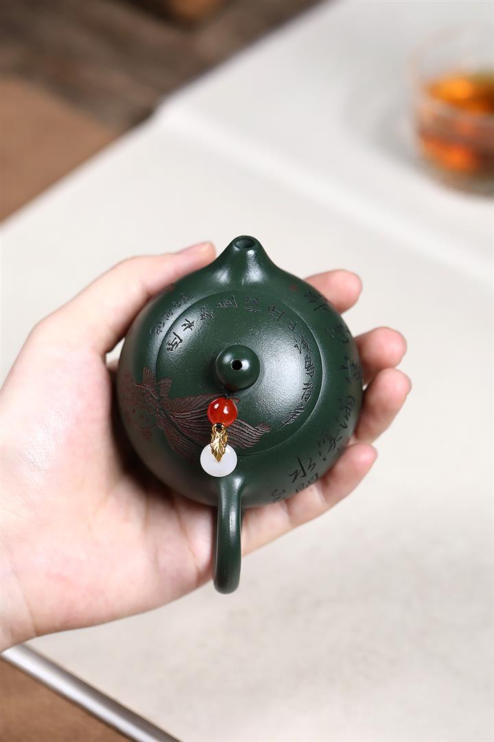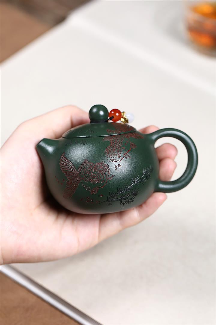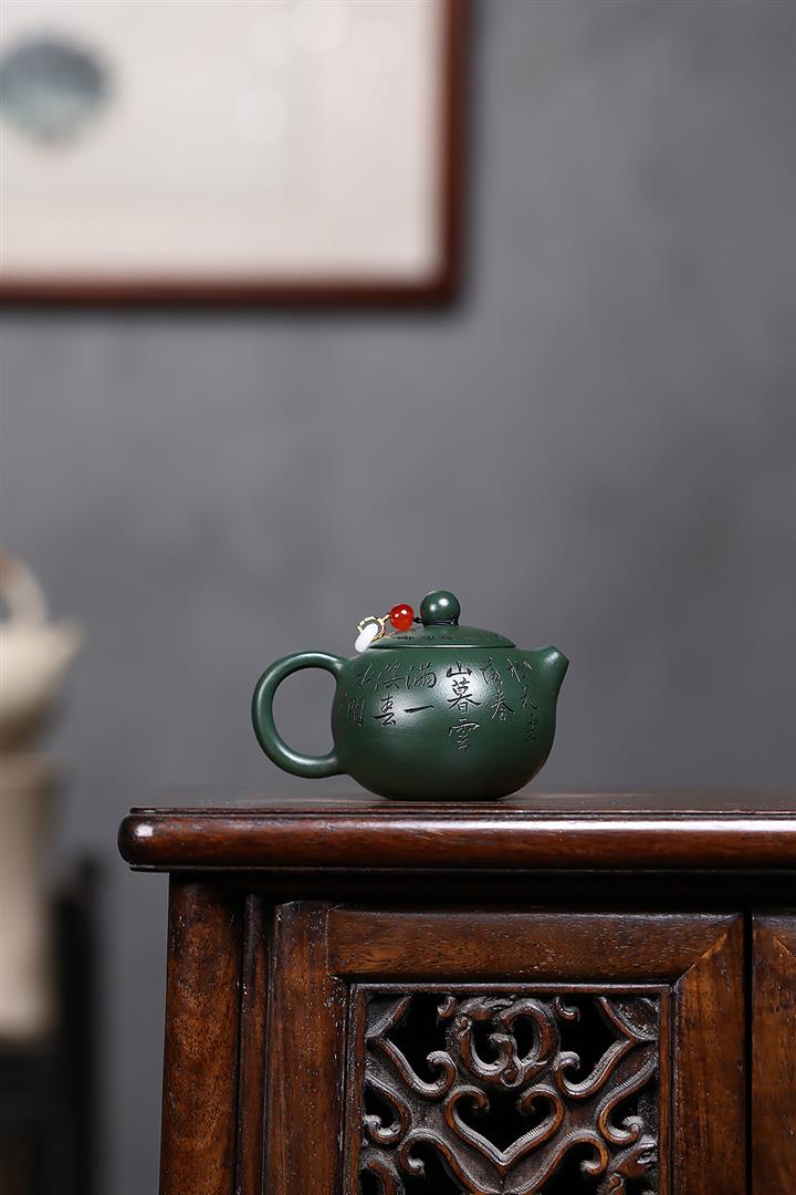 原礦綠泥灑金小品寒江泡茶壺POT7795