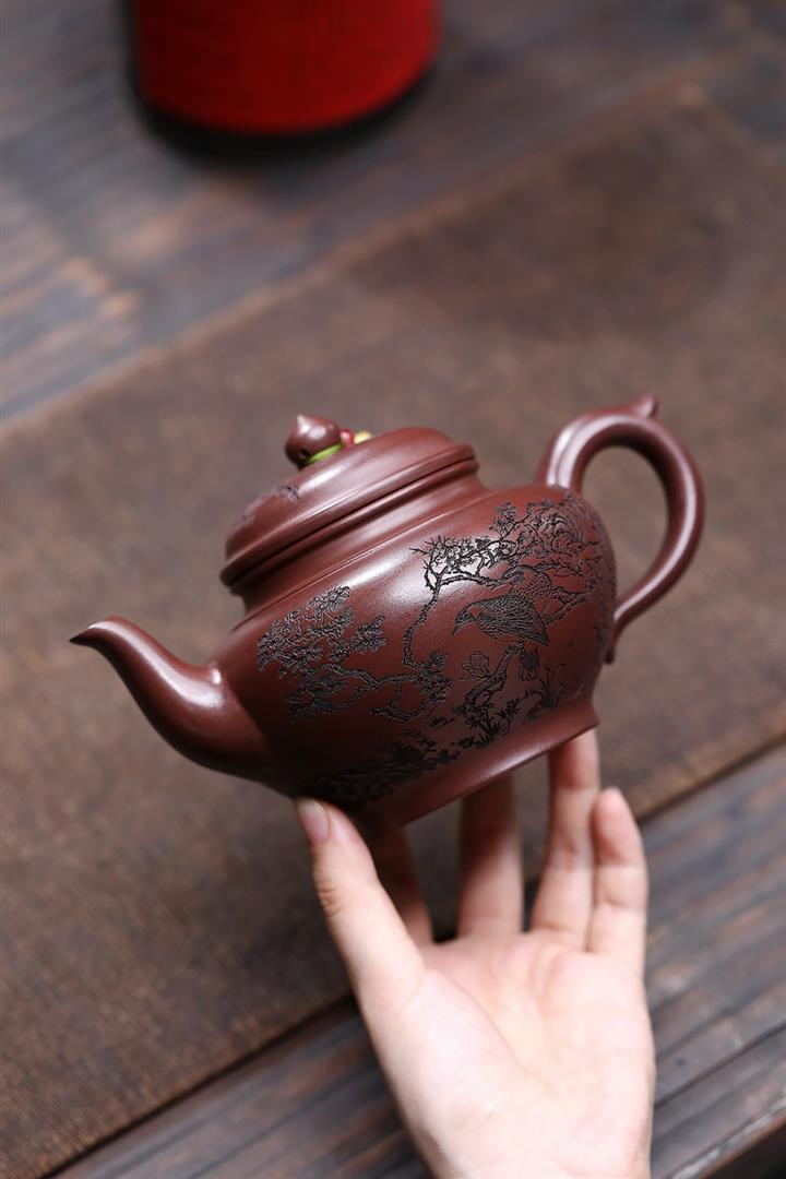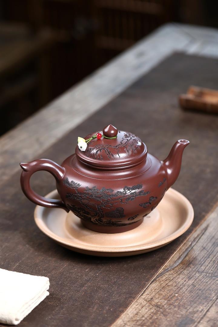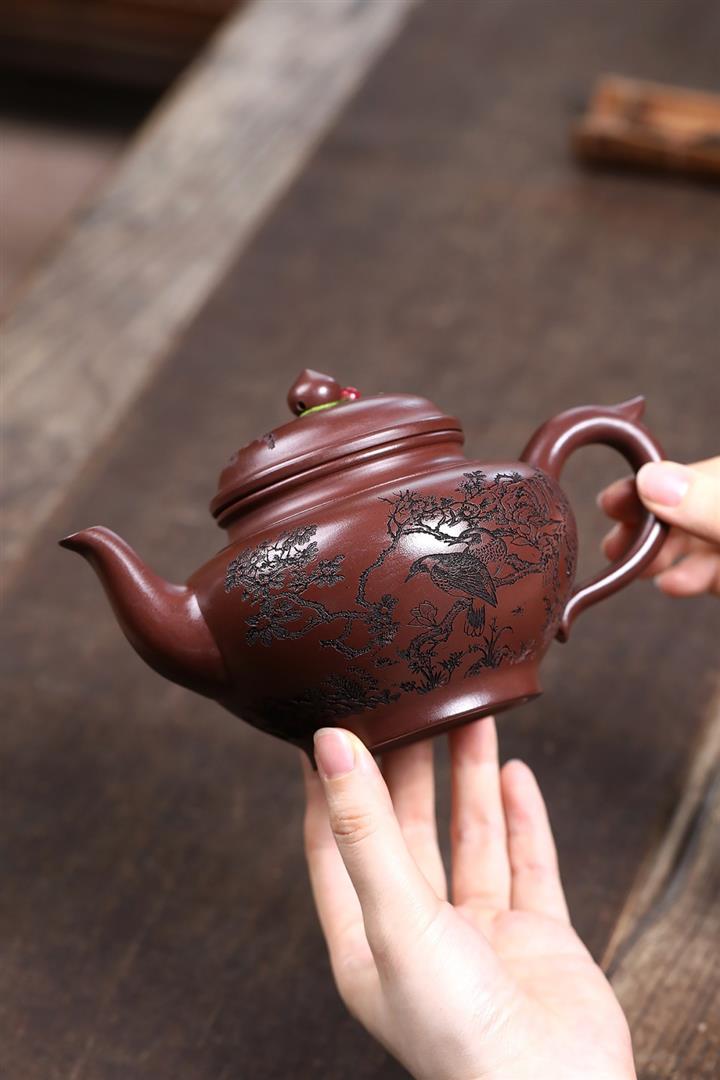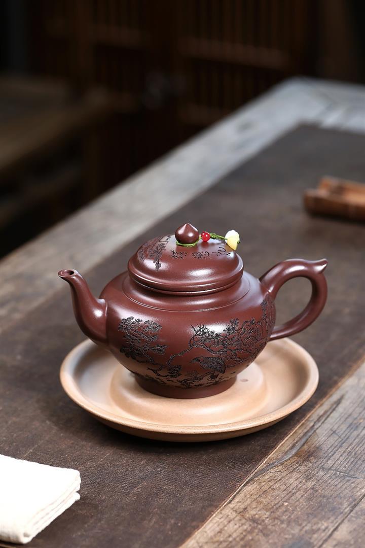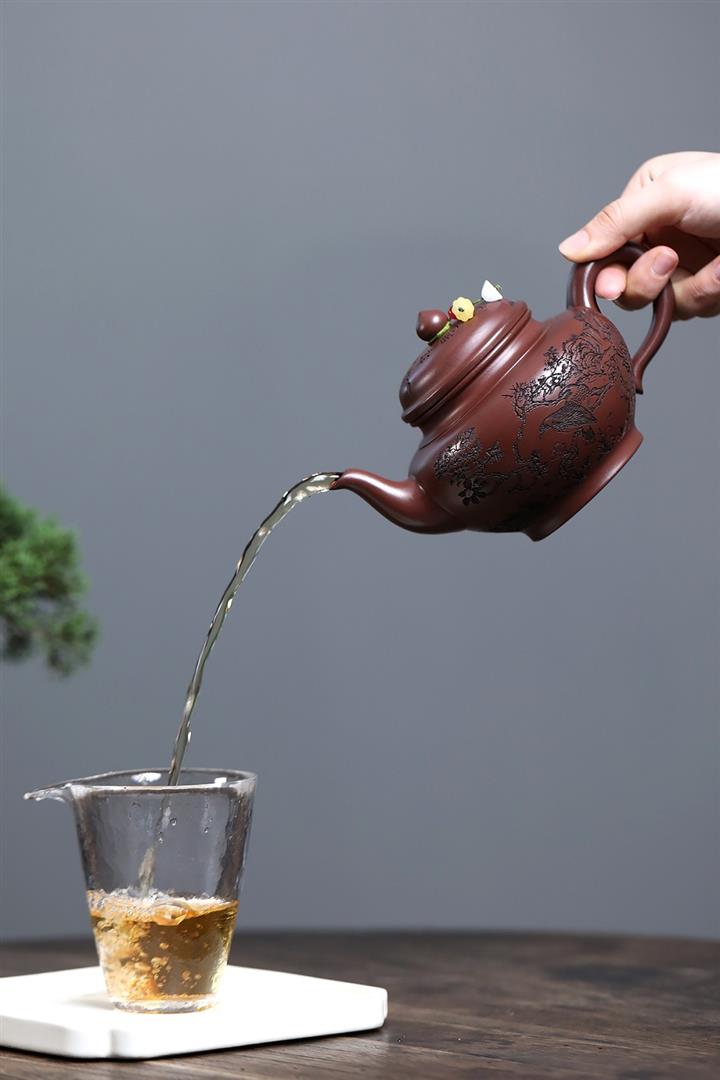 紫砂使用越久,壺身色澤越發光亮照人,氣韻溫雅。紫砂壺長久使用器身會因撫摸擦拭,變得越發溫潤光澤!