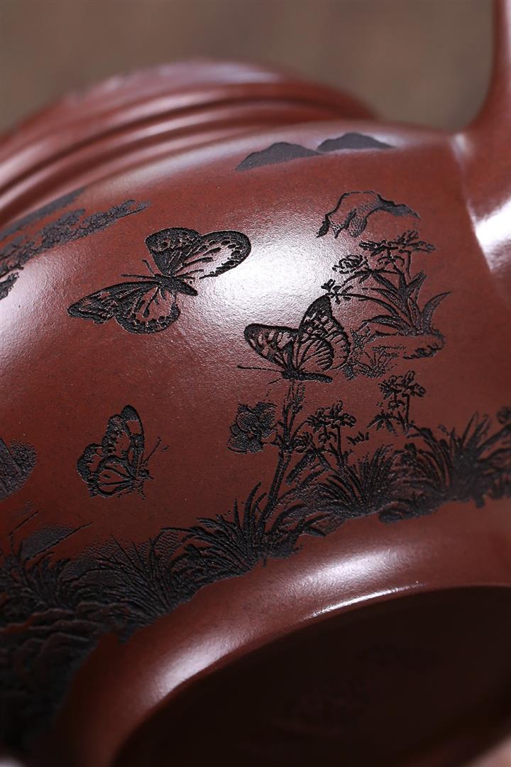 原礦陳腐紫泥蝶戀花笑櫻壺POT7607