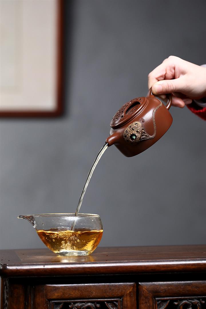 紫砂使用越久,壺身色澤越發光亮照人,氣韻溫雅。紫砂壺長久使用器身會因撫摸擦拭,變得越發溫潤光澤!