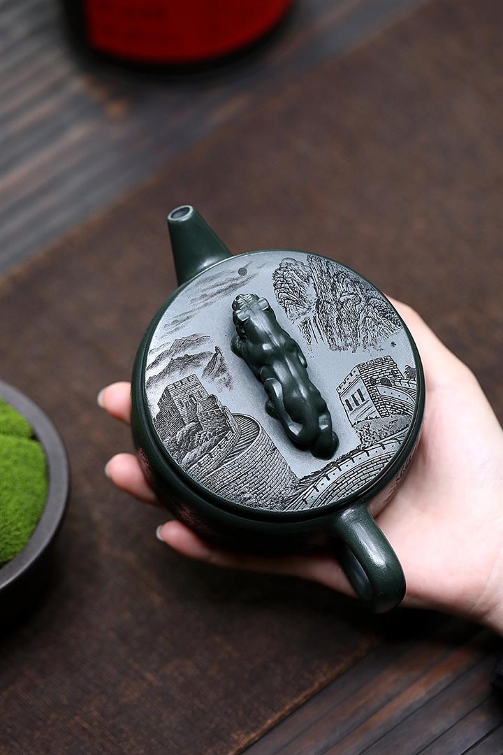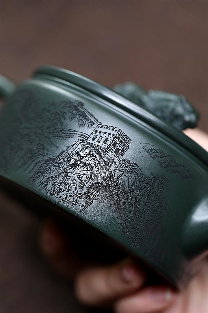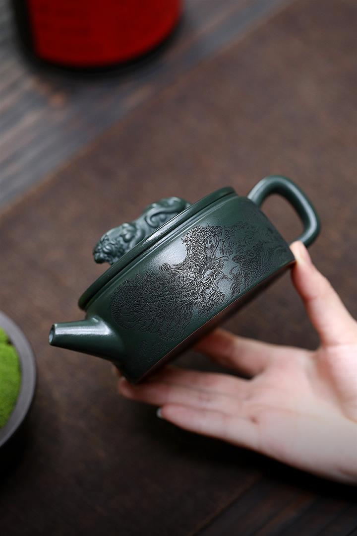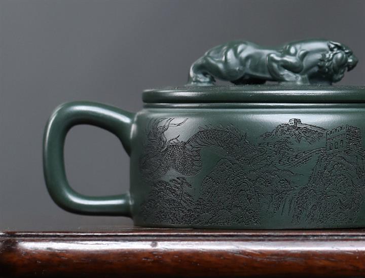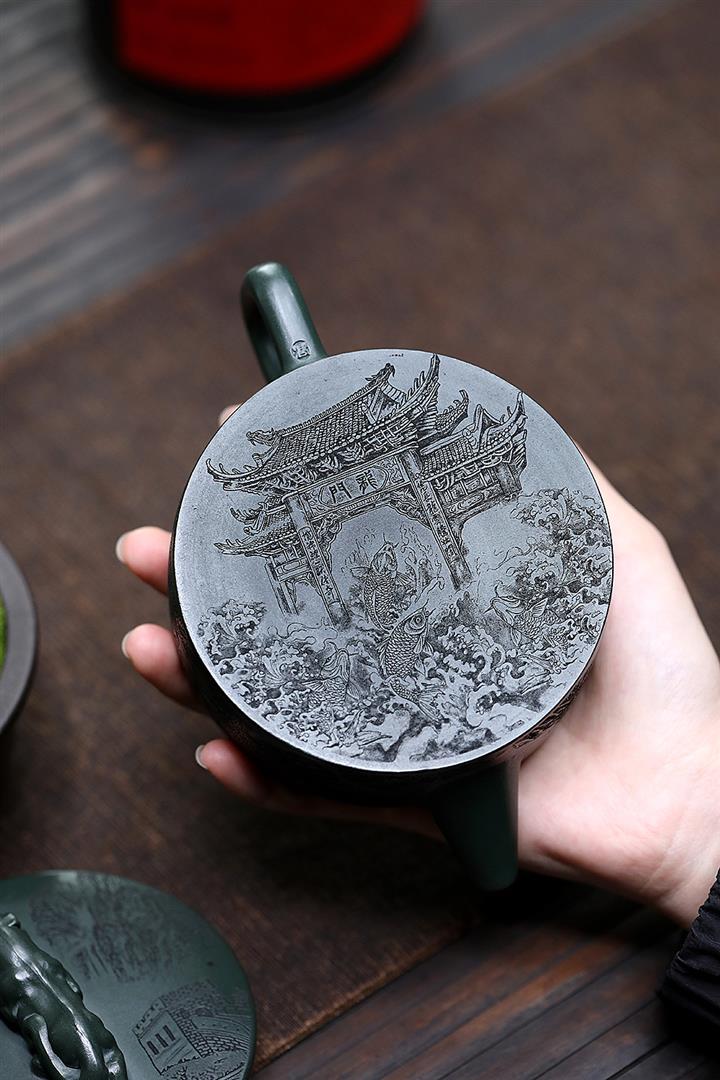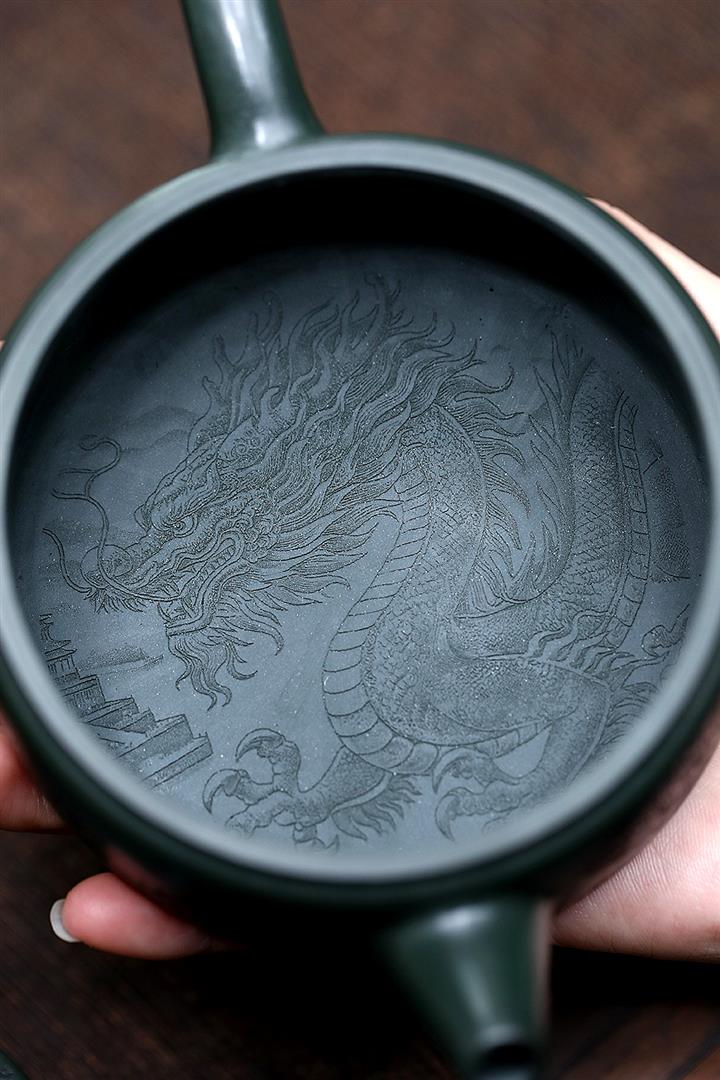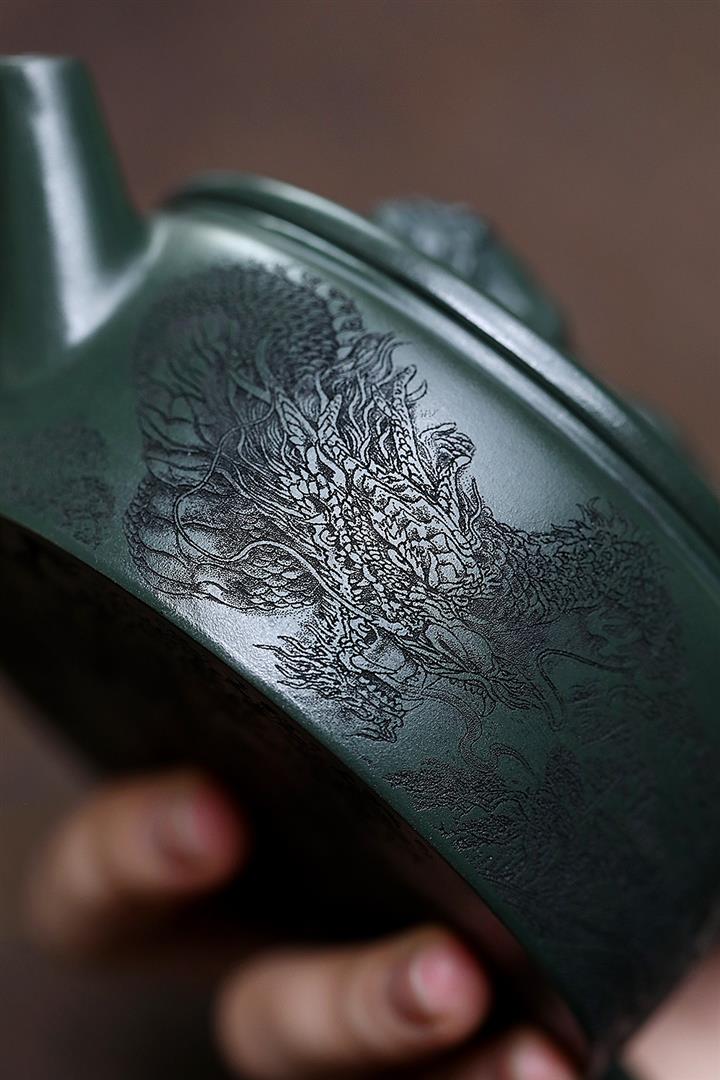 原礦綠泥祥雲魚化龍紫砂壺POT4616