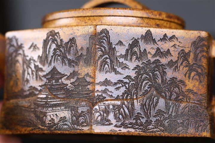 原礦紫泥刻繪山水德鐘茶壺POT7056
