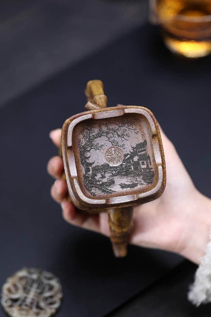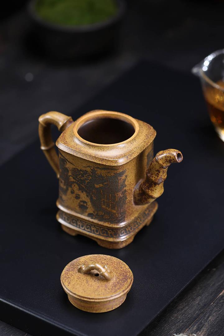 原礦龍骨金砂四方竹段茶壺POT7657