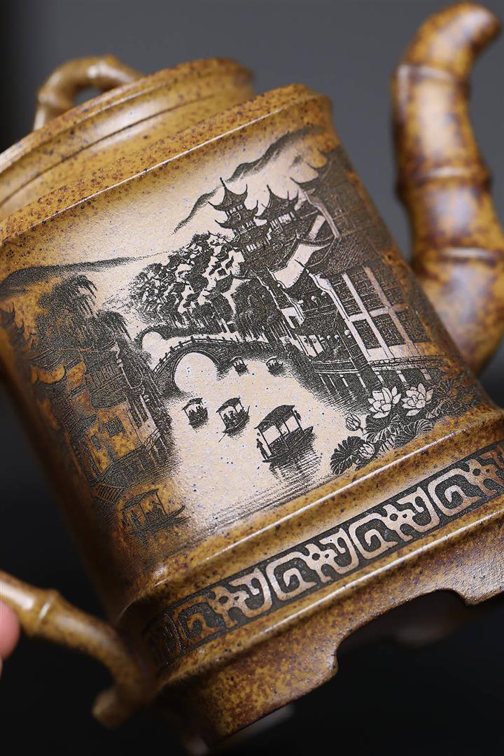 原礦紫泥山水樓閣井欄茶壺POT7916