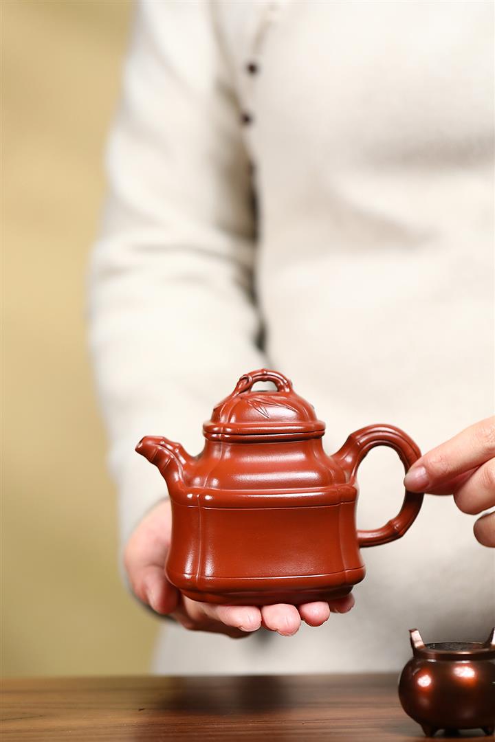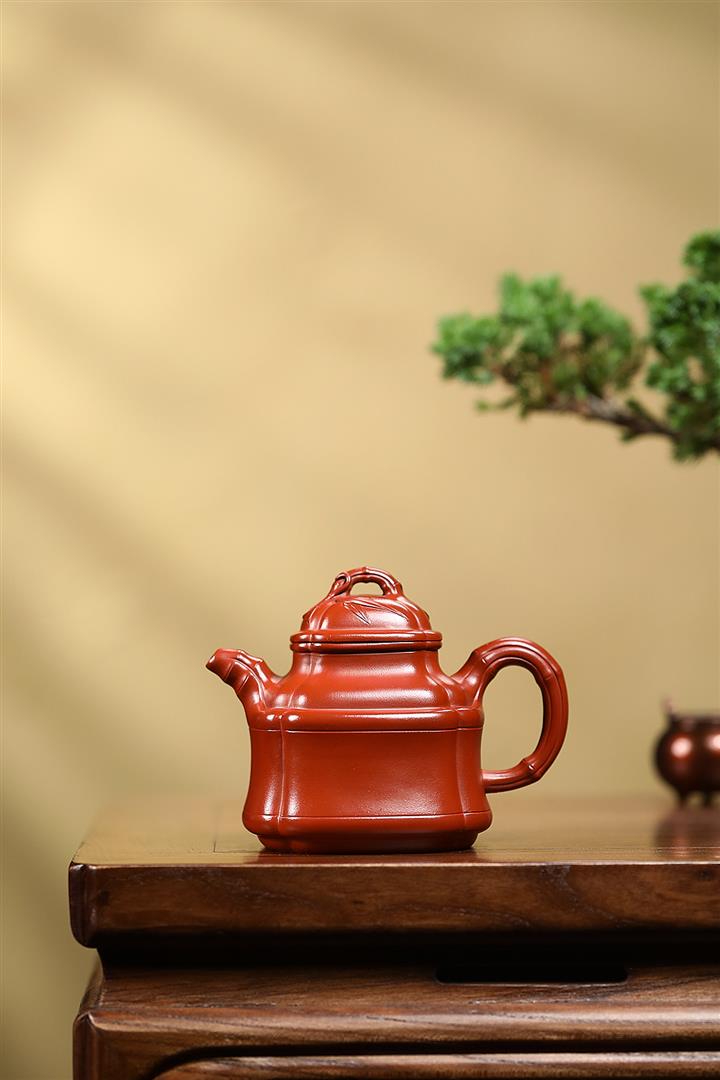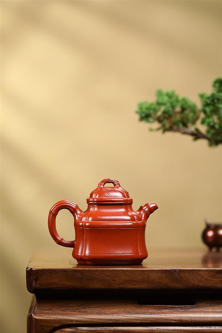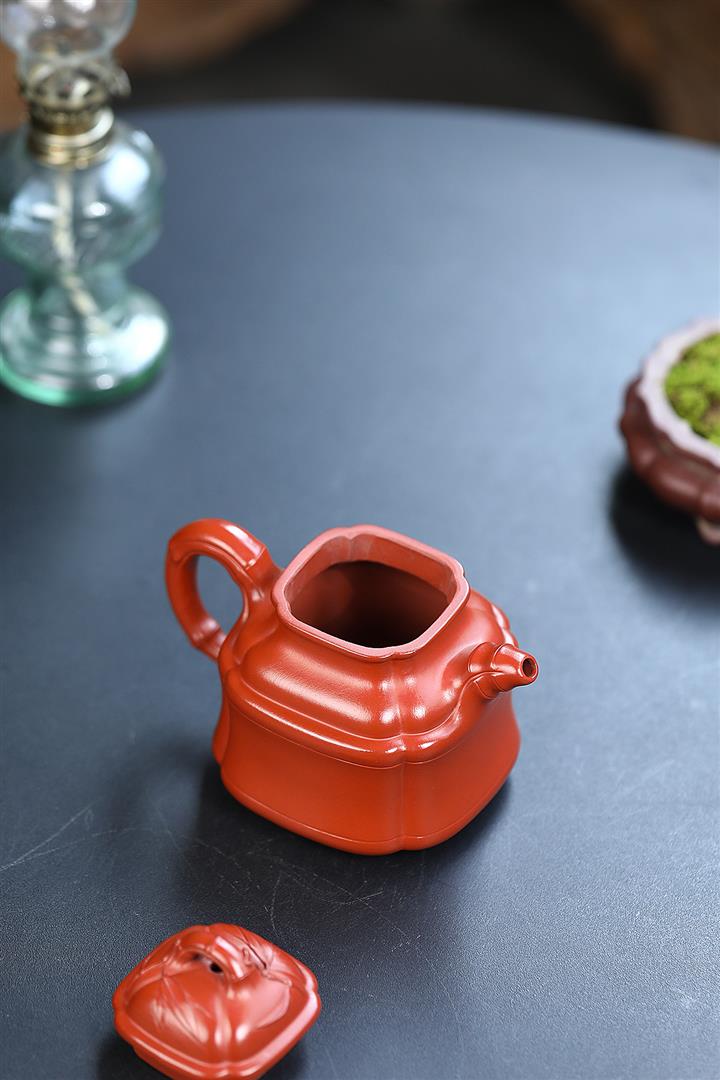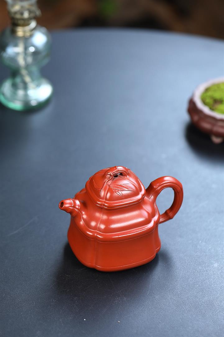原礦大紅袍四方竹鼎茶壺POT7659