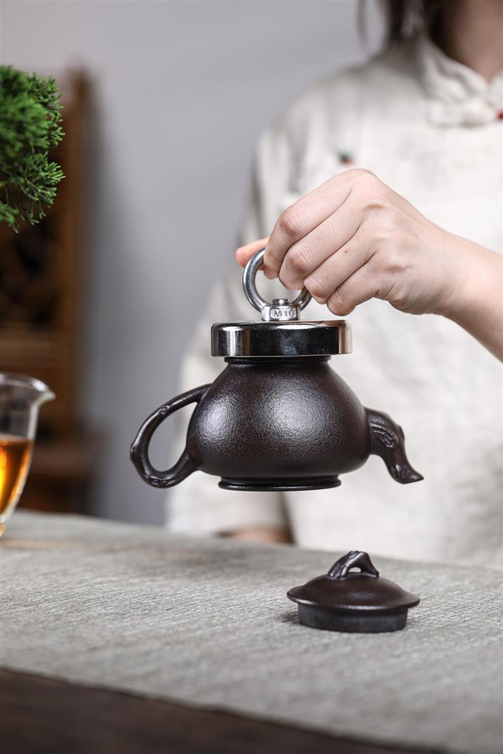 特高溫柴燒段泥獸面銜環紫砂壺POT5776