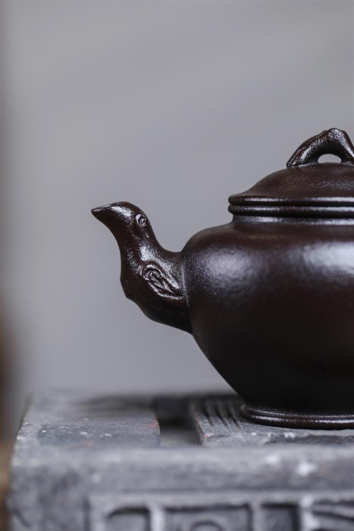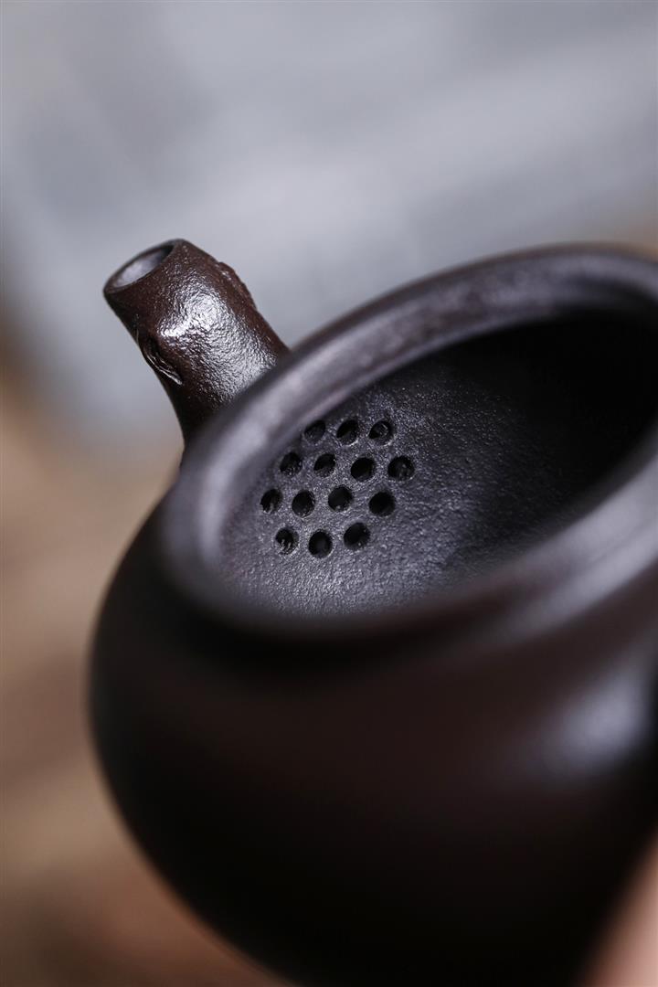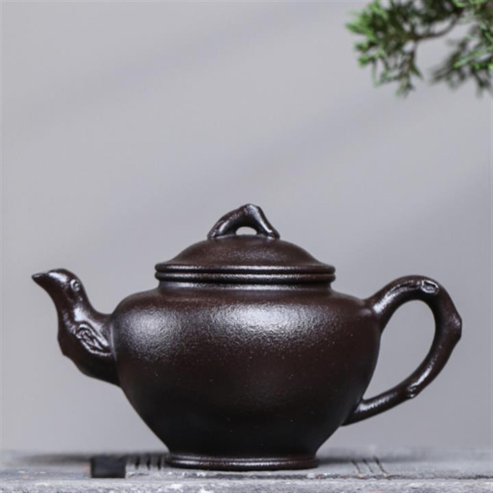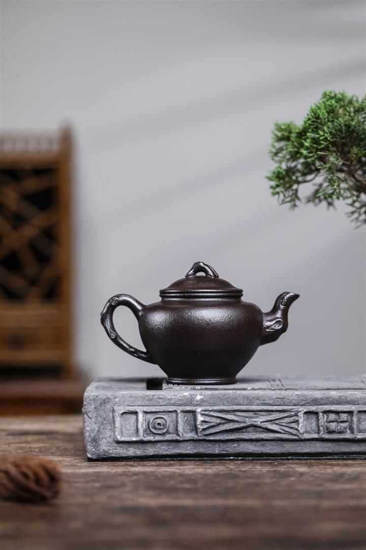 原礦黑料石黃磁吸報春茶壺POT7664