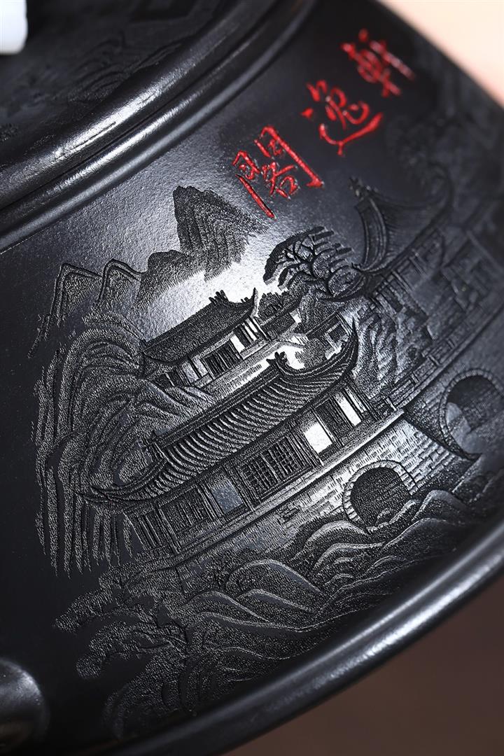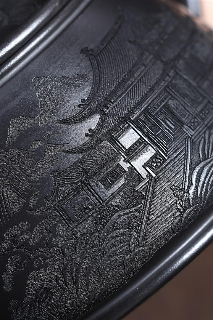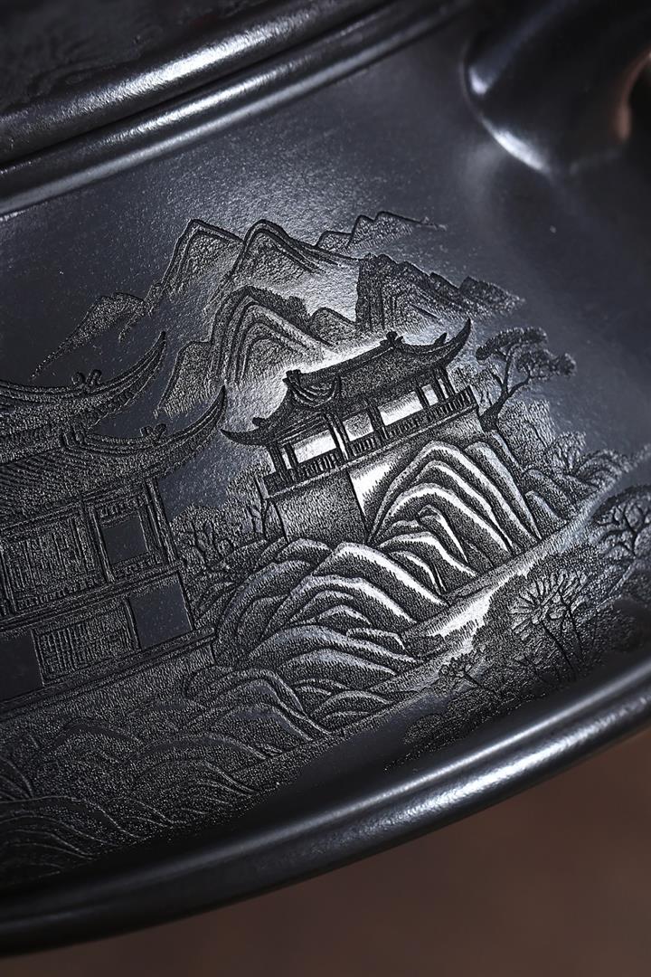 【作品介紹】作品深蘊內涵,做工細致典雅,型用完備,器形端莊穩重,比例協調,結構嚴謹,泥色潤澤。
