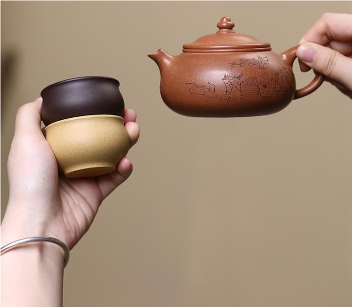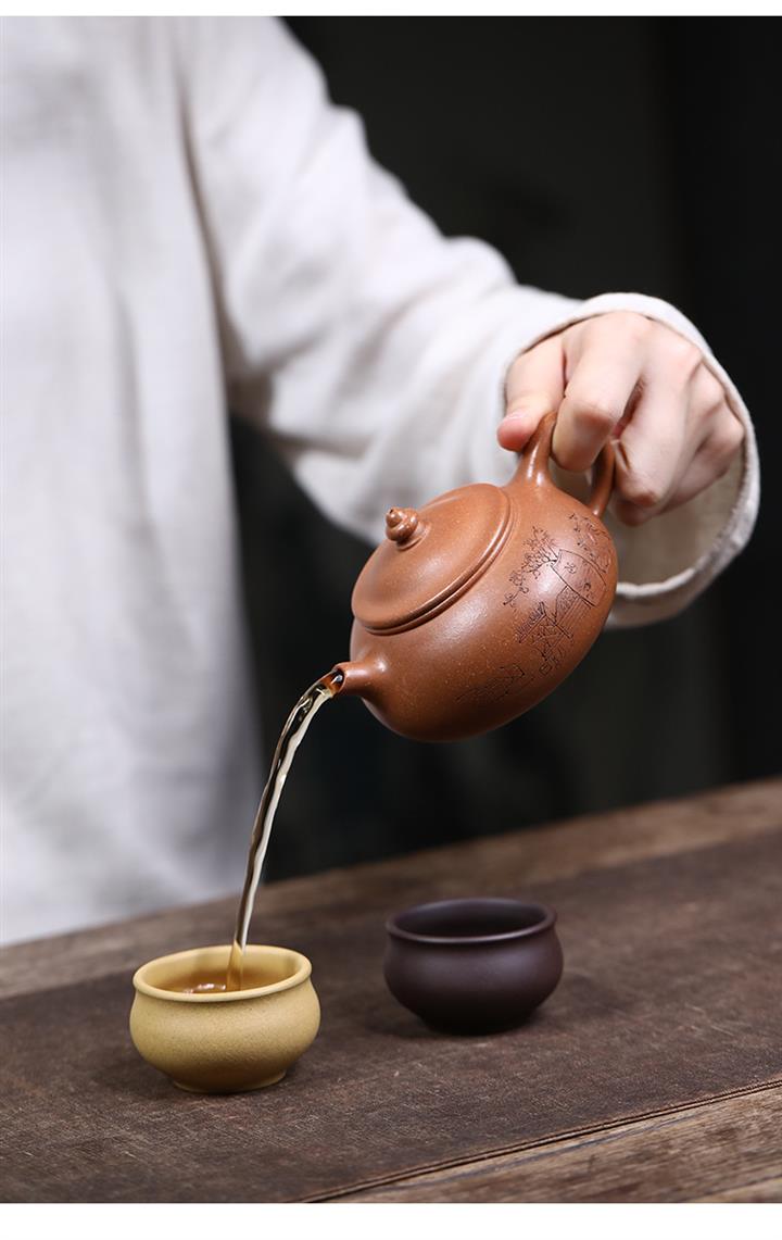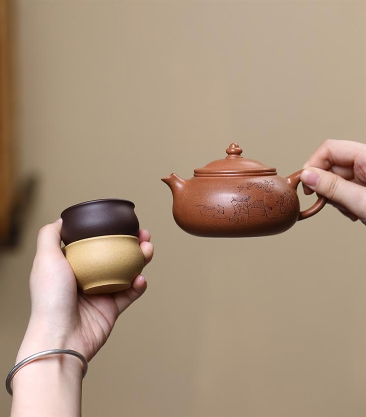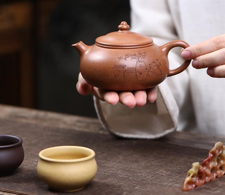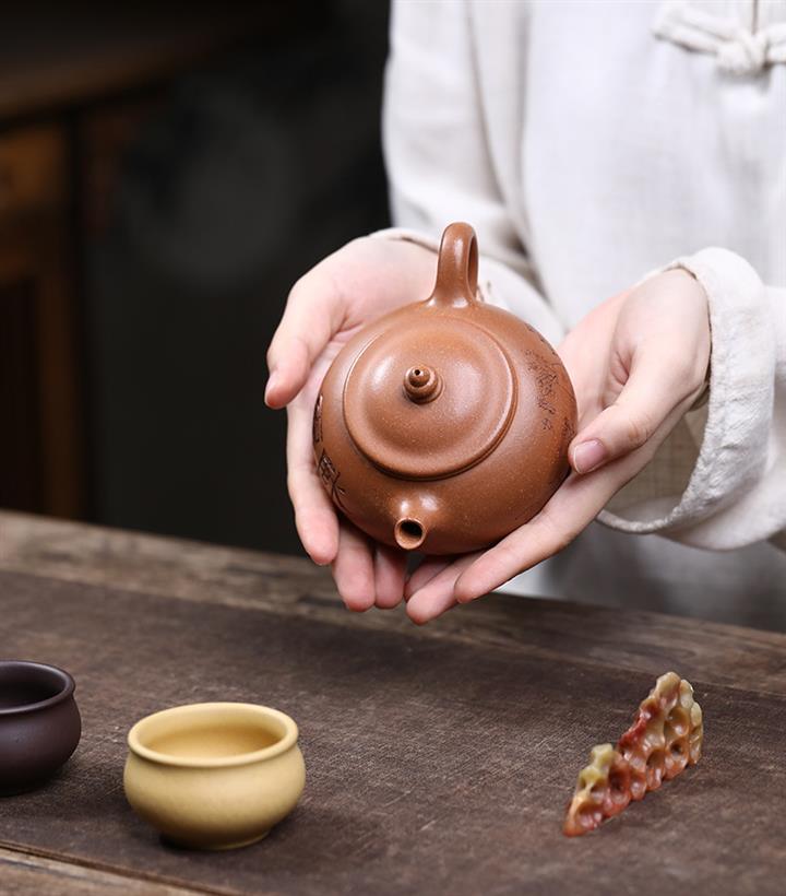 紫砂使用越久,壺身色澤越發光亮照人,氣韻溫雅。紫砂壺長久使用器身會因撫摸擦拭,變得越發溫潤光澤!