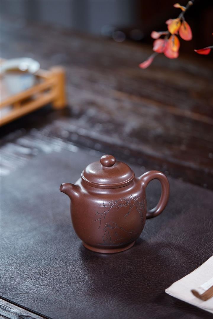 【泥料特點】砂土氣重,似淳實農民,日久使用,漸露鋒芒,養成變化,溫潤莊重。紫砂是壹種雙重氣孔結構的多孔性材質,氣孔微細,密度高。用紫砂壺沏茶,不失原味,且香不渙散,得茶之真香真味。紫砂使用越久,壺身色澤越發光亮照人,氣韻溫雅。紫砂壺長久使用器身會因撫摸擦拭,變得越發溫潤光澤。