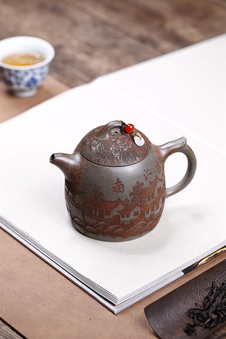 【作品介紹】此款壺形線條流暢,壺把,壺嘴,壺身壹氣呵成栩栩如生,是收藏把玩的好壺,泥料色澤古樸典雅,日久使用,漸露鋒芒,養成變化快,溫潤莊重,用其泡茶,使用的年代久,壺身就溫潤,泡出來的茶湯也就醇郁芳馨。