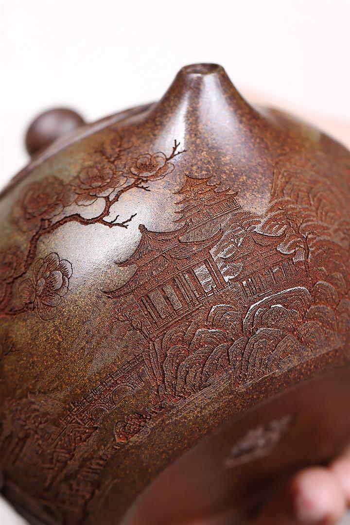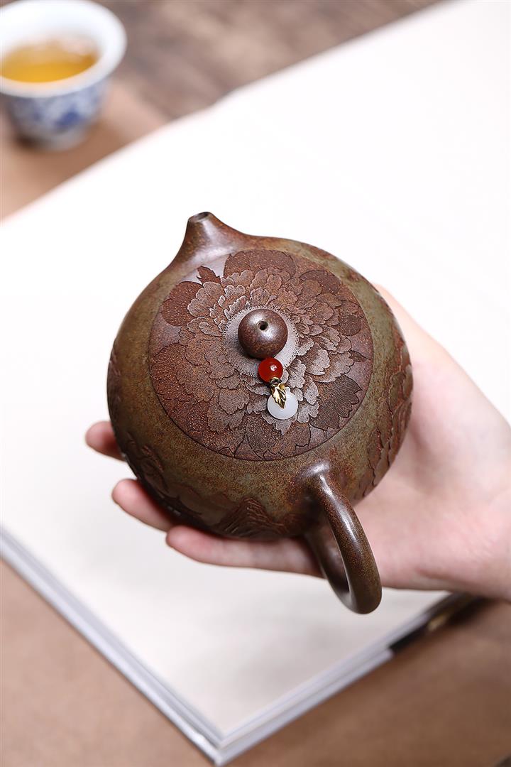 【泥料特點】砂土氣重,似淳實農民,日久使用,漸露鋒芒,養成變化,溫潤莊重。紫砂是壹種雙重氣孔結構的多孔性材質,氣孔微細,密度高。用紫砂壺沏茶,不失原味,且香不渙散,得茶之真香真味。紫砂使用越久,壺身色澤越發光亮照人,氣韻溫雅。紫砂壺長久使用器身會因撫摸擦拭,變得越發溫潤光澤。