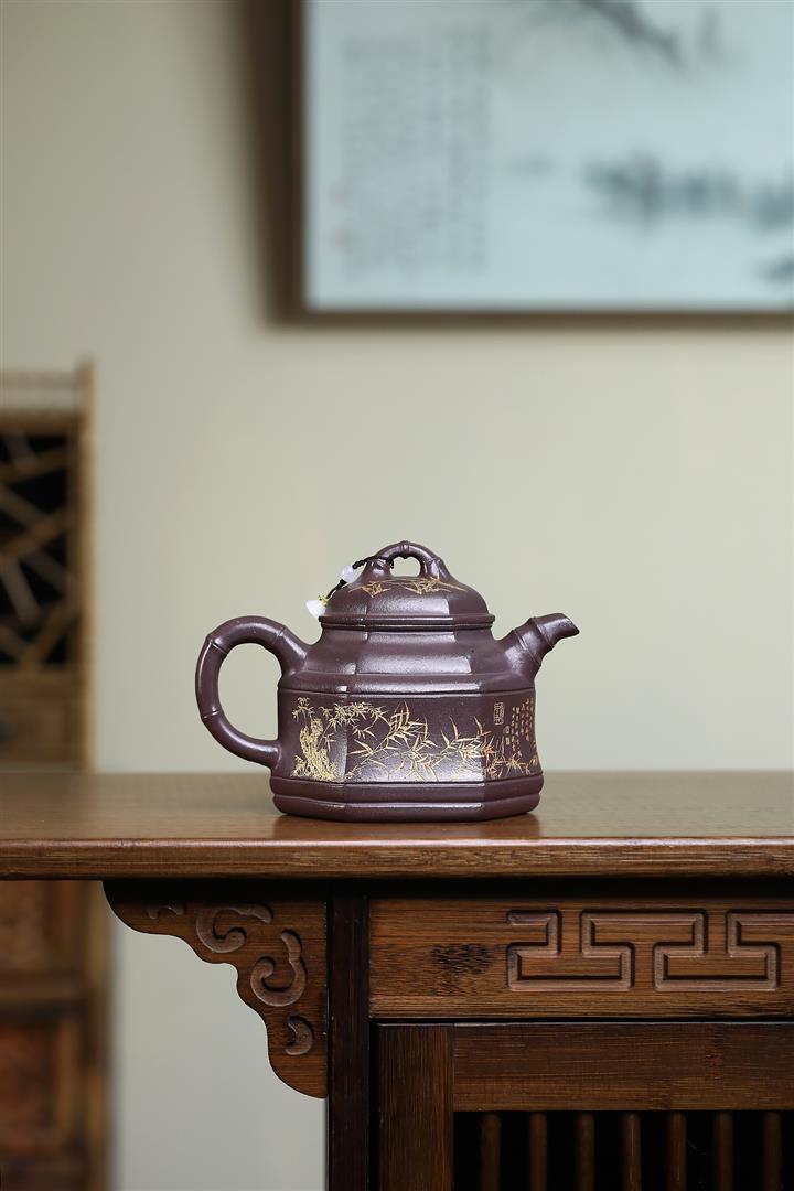 350cc原礦龍骨金砂特高溫四方竹段茶壺POT8637