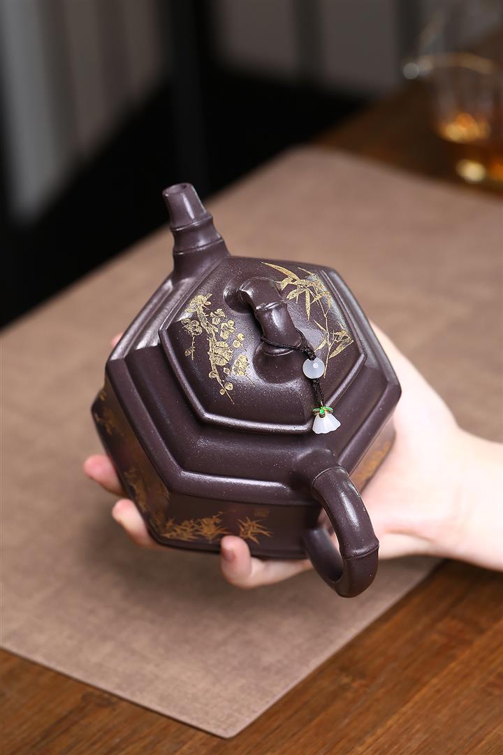 【作品介紹】此款壺形線條流暢,壺把,壺嘴,壺身壹氣呵成栩栩如生,是收藏把玩的好壺,泥料色澤古樸典雅,日久使用,漸露鋒芒,養成變化快,溫潤莊重,用其泡茶,使用的年代久,壺身就溫潤,泡出來的茶湯也就醇郁芳馨。