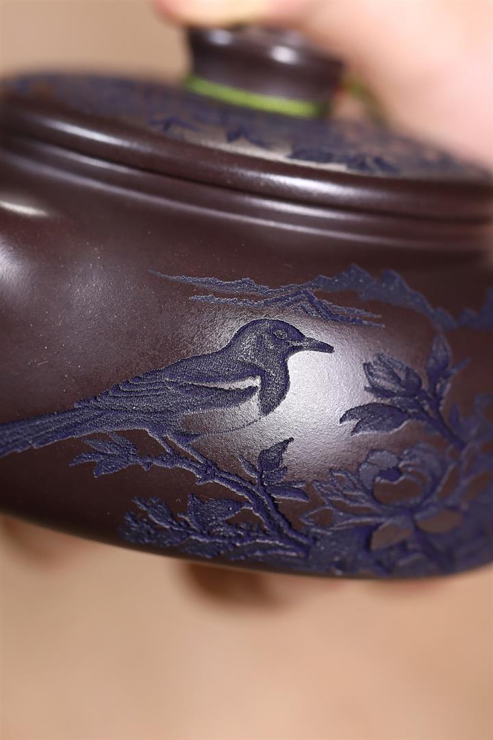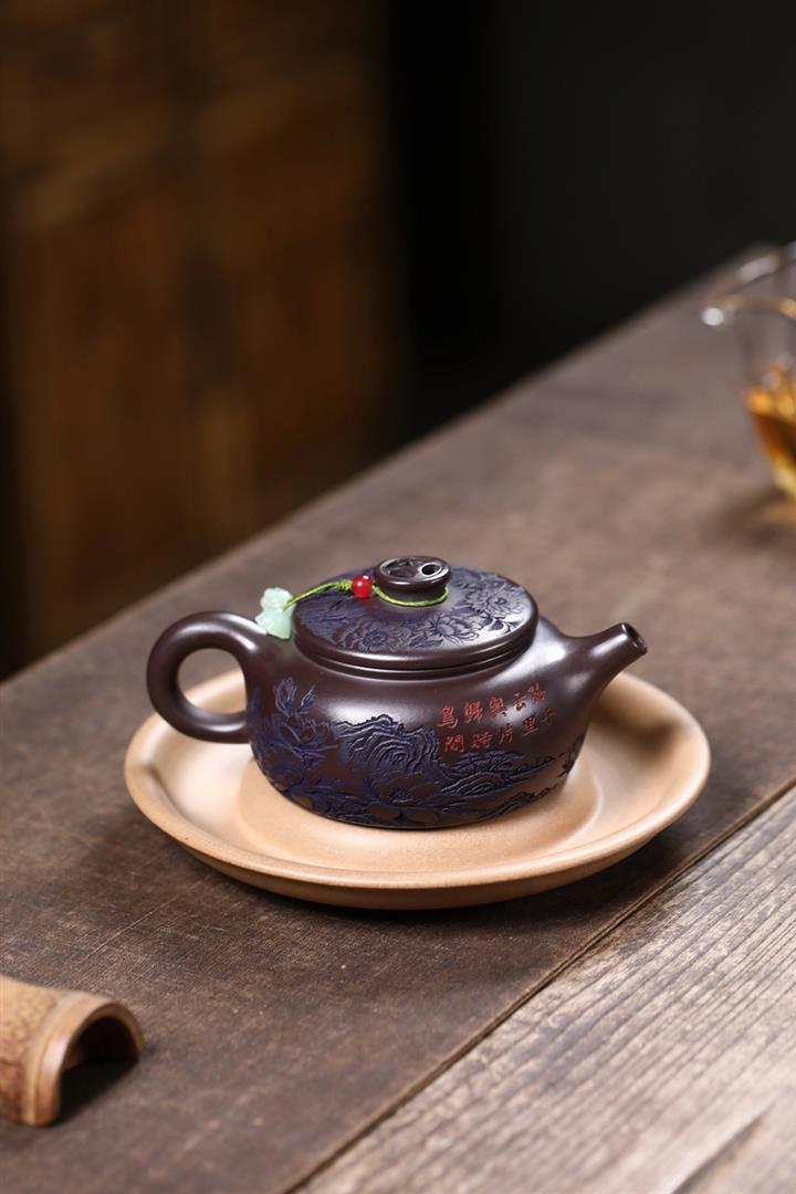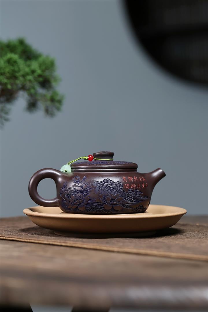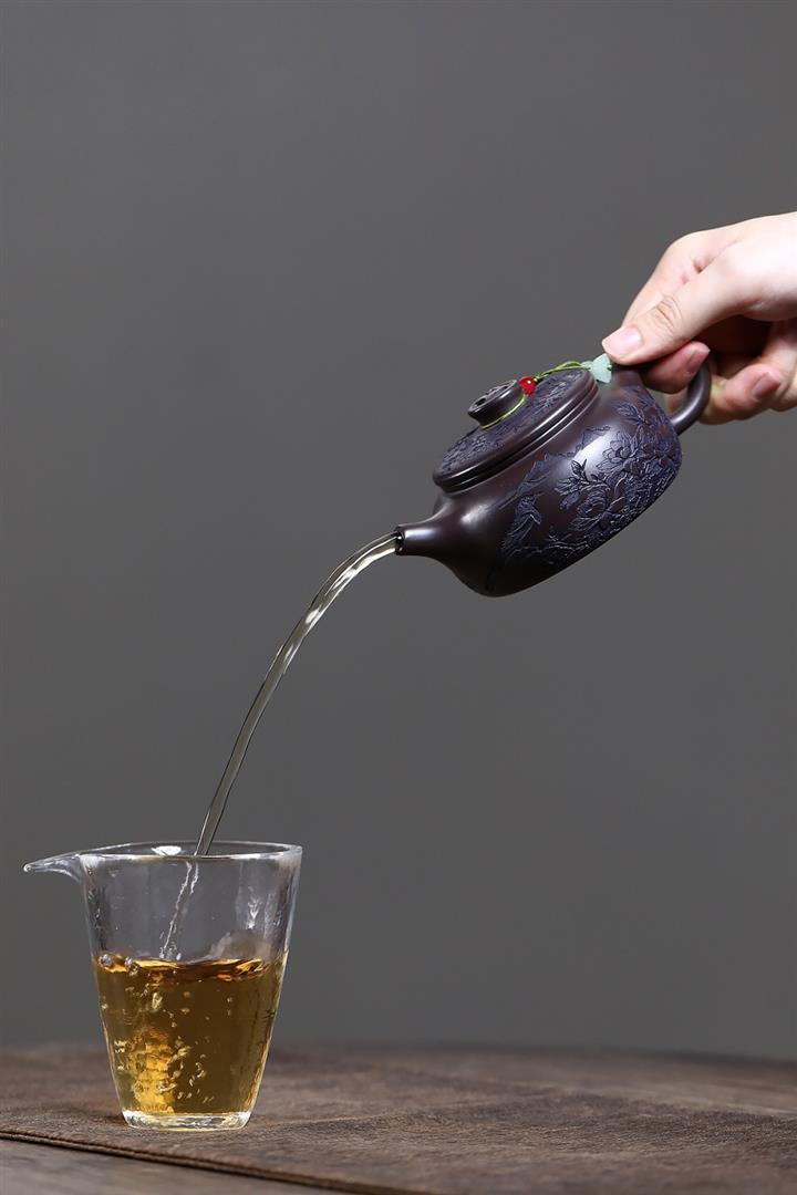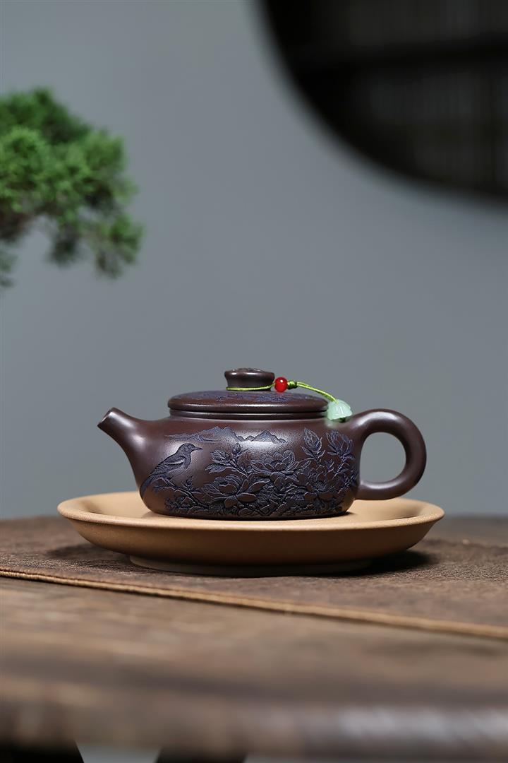 【泥料特點】砂土氣重,似淳實農民,日久使用,漸露鋒芒,養成變化,溫潤莊重。紫砂是壹種雙重氣孔結構的多孔性材質,氣孔微細,密度高。用紫砂壺沏茶,不失原味,且香不渙散,得茶之真香真味。紫砂使用越久,壺身色澤越發光亮照人,氣韻溫雅。紫砂壺長久使用器身會因撫摸擦拭,變得越發溫潤光澤。