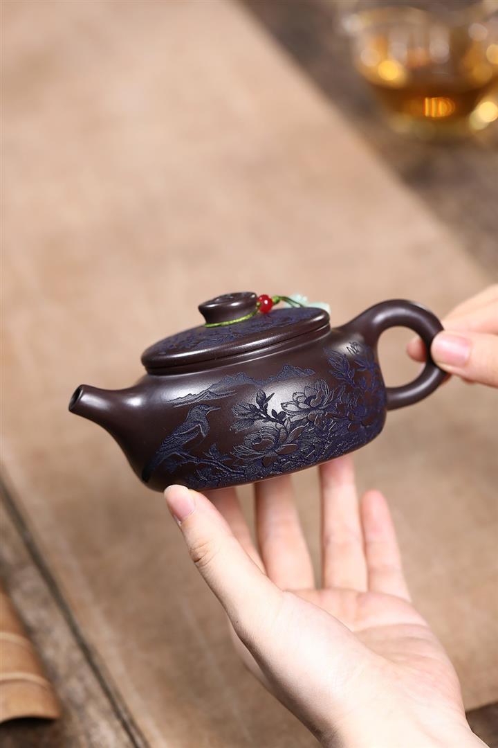 【作品介紹】此款壺形線條流暢,壺把,壺嘴,壺身壹氣呵成栩栩如生,是收藏把玩的好壺,泥料色澤古樸典雅,日久使用,漸露鋒芒,養成變化快,溫潤莊重,用其泡茶,使用的年代久,壺身就溫潤,泡出來的茶湯也就醇郁芳馨。