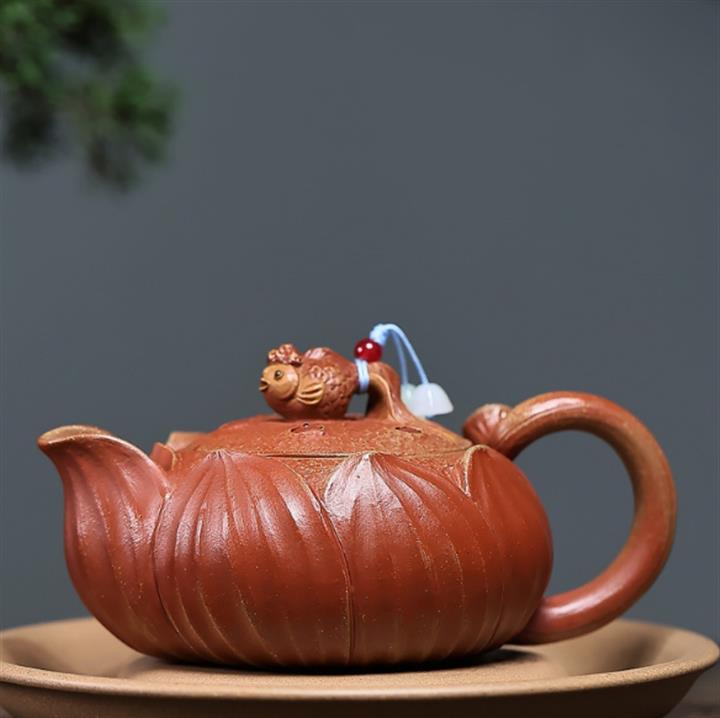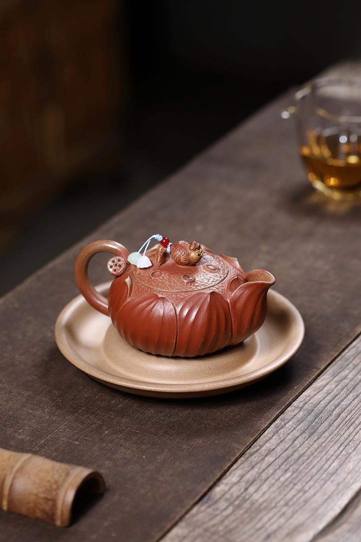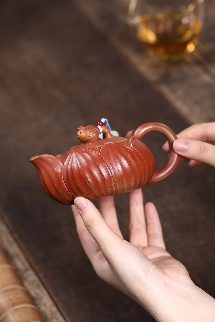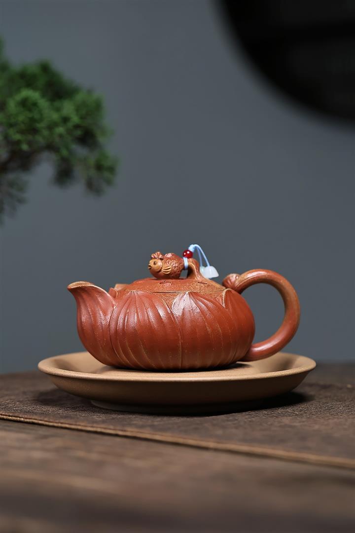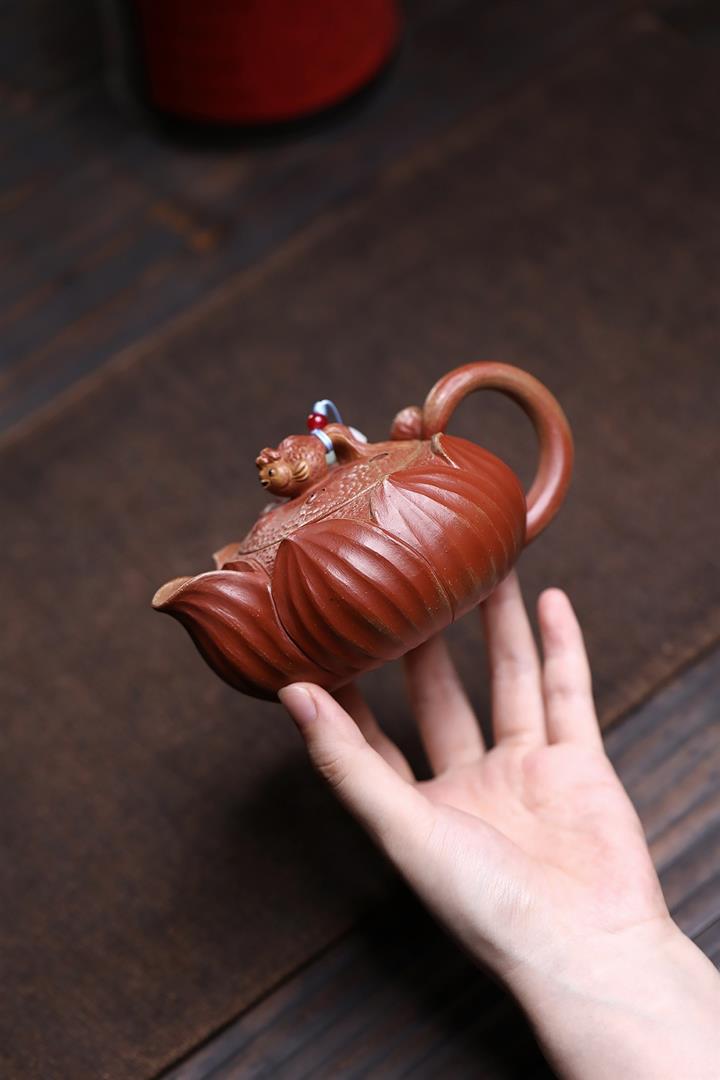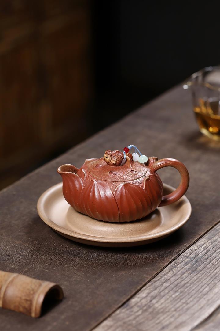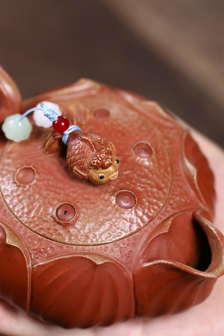 原礦赤金朱泥手工祥雲周盤茶壺POT6628