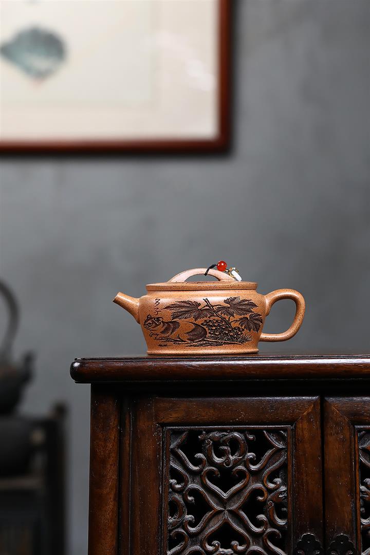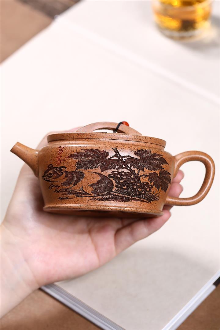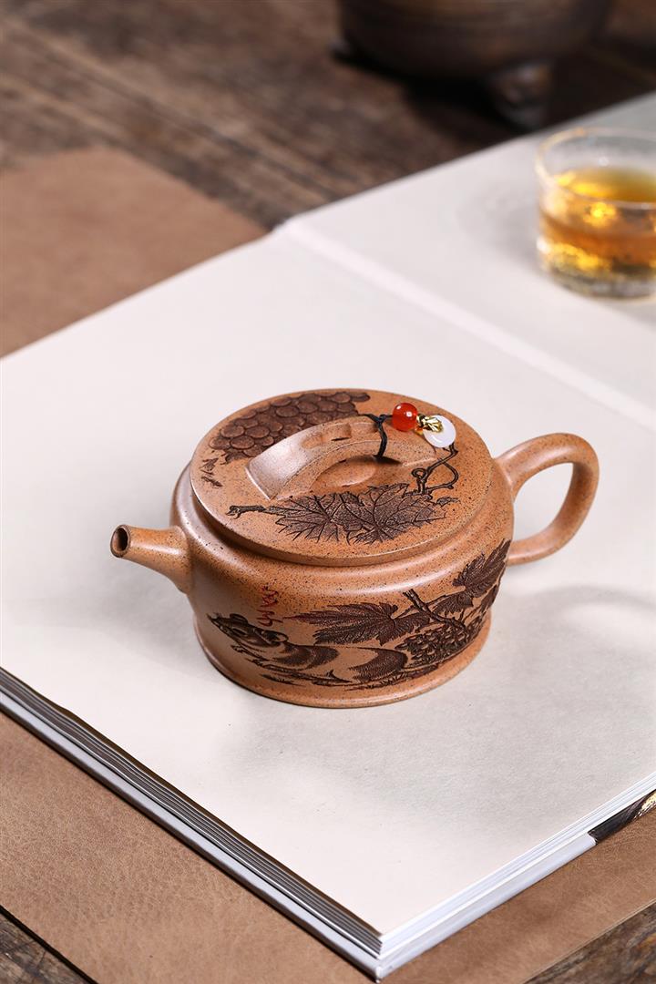 【作品介紹】此款壺形線條流暢,壺把,壺嘴,壺身壹氣呵成栩栩如生,是收藏把玩的好壺,泥料色澤古樸典雅,日久使用,漸露鋒芒,養成變化快,溫潤莊重,用其泡茶,使用的年代久,壺身就溫潤,泡出來的茶湯也就醇郁芳馨。