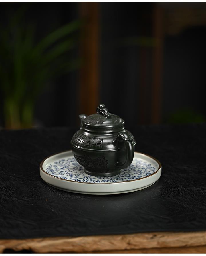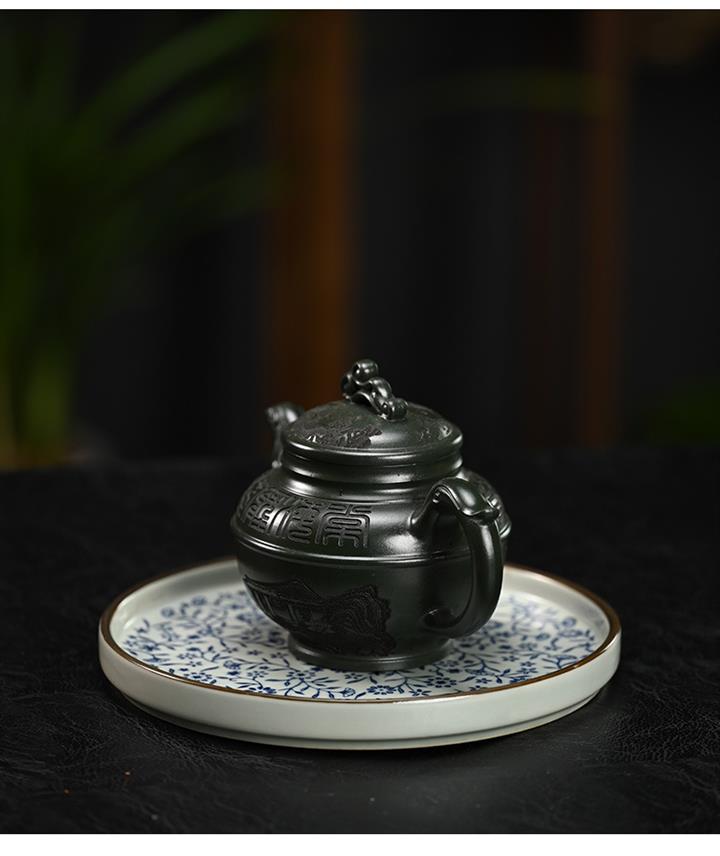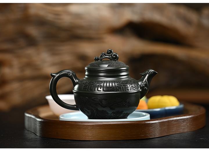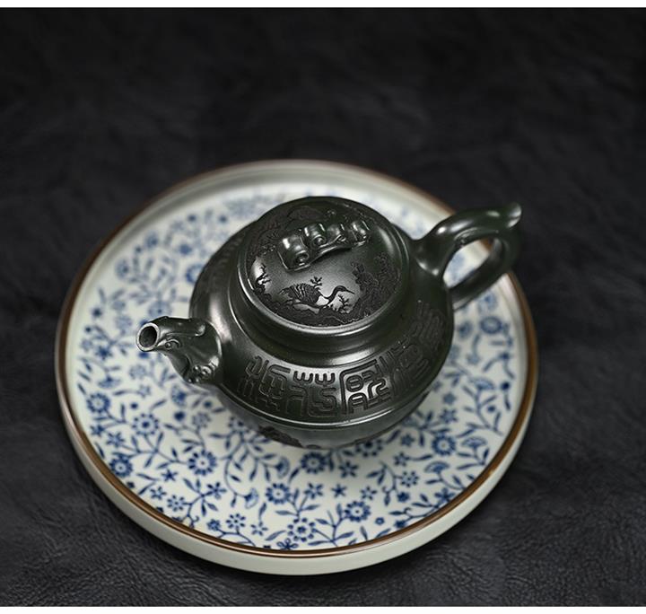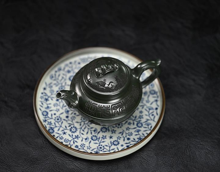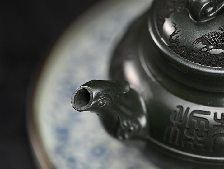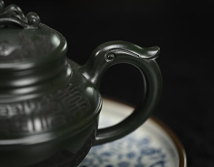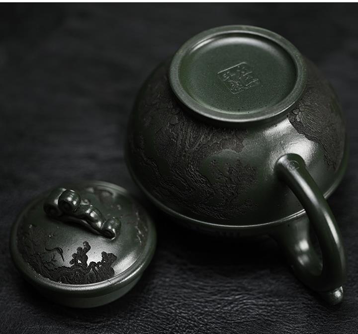 原礦翡翠綠泥刻繪漢韻茶壺POT7866
