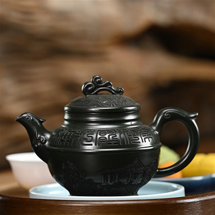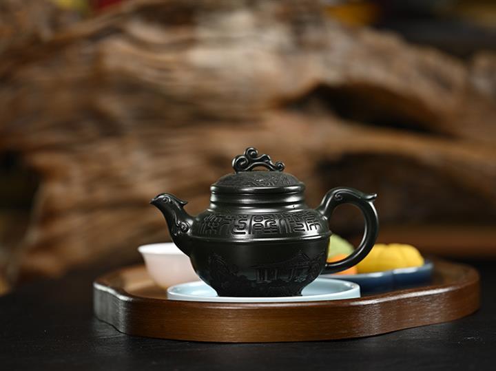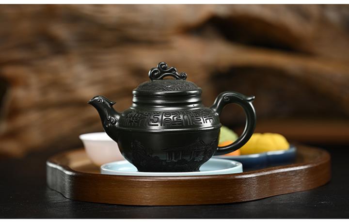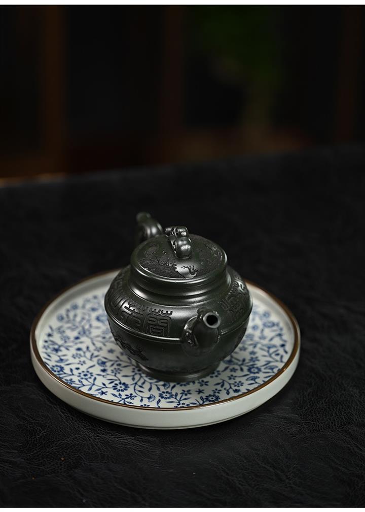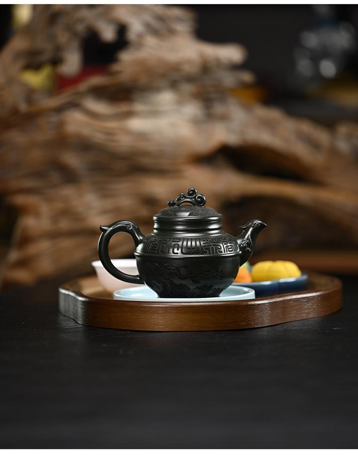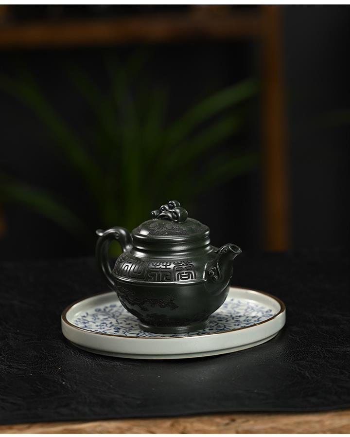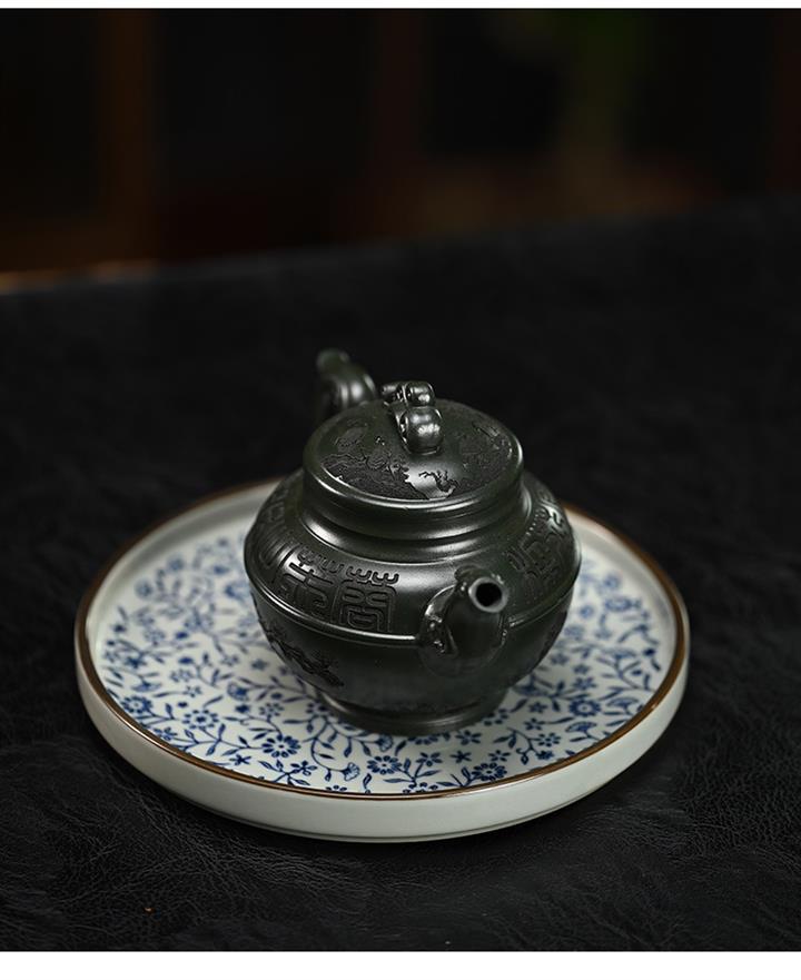 原礦翡翠綠泥刻繪漢韻茶壺POT7866