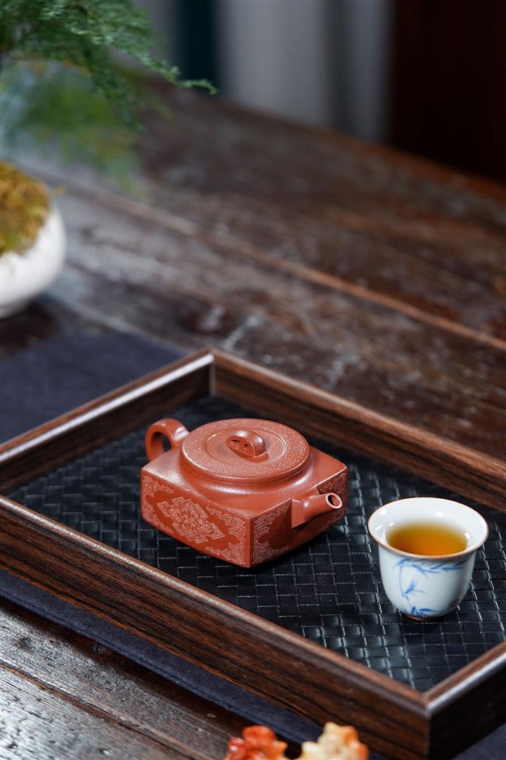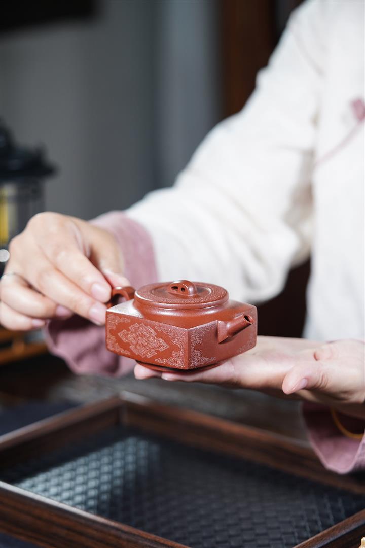 【泥料特點】砂土氣重,似淳實農民,日久使用,漸露鋒芒,養成變化,溫潤莊重。紫砂是壹種雙重氣孔結構的多孔性材質,氣孔微細,密度高。用紫砂壺沏茶,不失原味,且香不渙散,得茶之真香真味。紫砂使用越久,壺身色澤越發光亮照人,氣韻溫雅。紫砂壺長久使用器身會因撫摸擦拭,變得越發溫潤光澤。