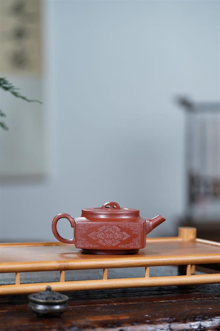 【作品介紹】此款壺形線條流暢,壺把,壺嘴,壺身壹氣呵成栩栩如生,是收藏把玩的好壺,泥料色澤古樸典雅,日久使用,漸露鋒芒,養成變化快,溫潤莊重,用其泡茶,使用的年代久,壺身就溫潤,泡出來的茶湯也就醇郁芳馨。