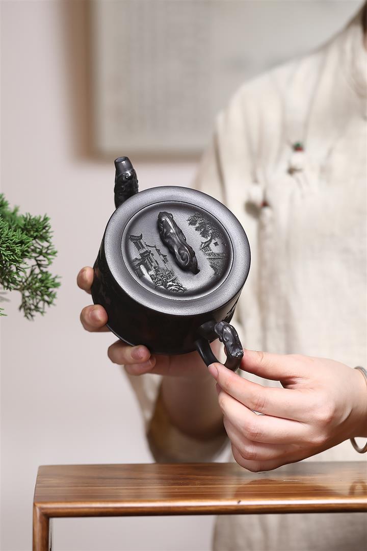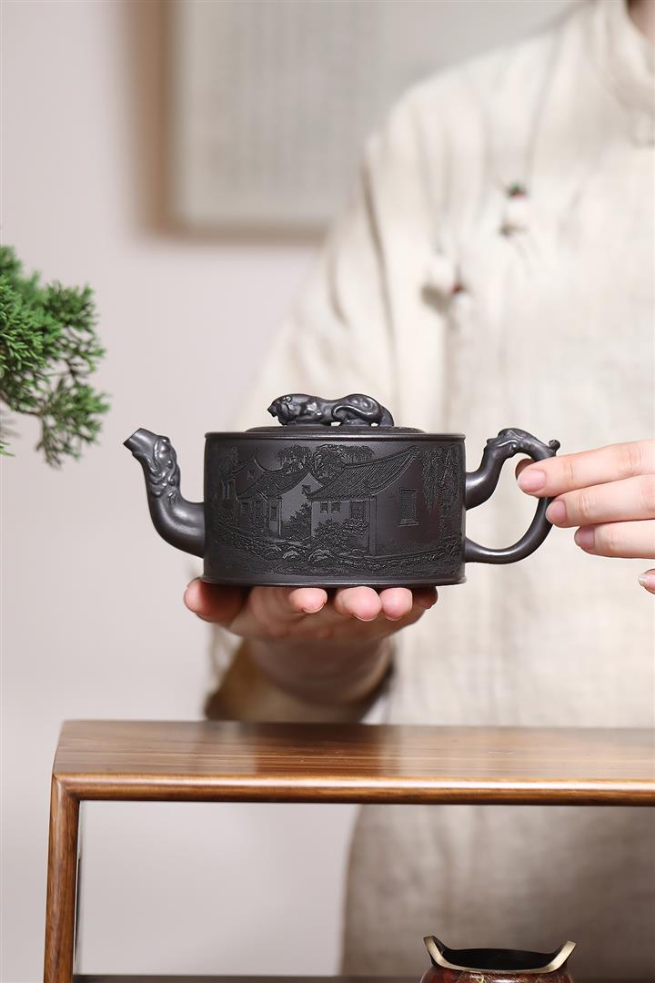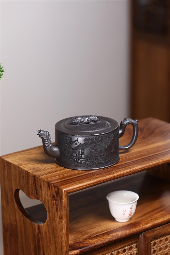 紫砂紫泥泥繪秦權紫砂壺POT5827