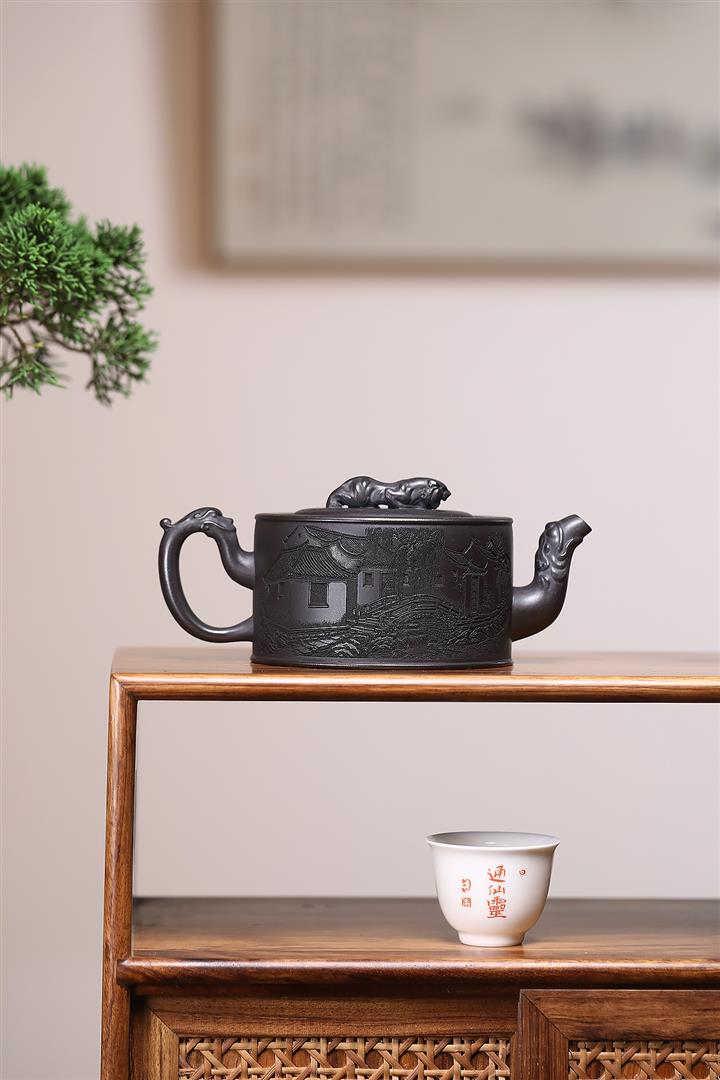 原礦玄鐵石黃臥虎藏龍壺POT7891