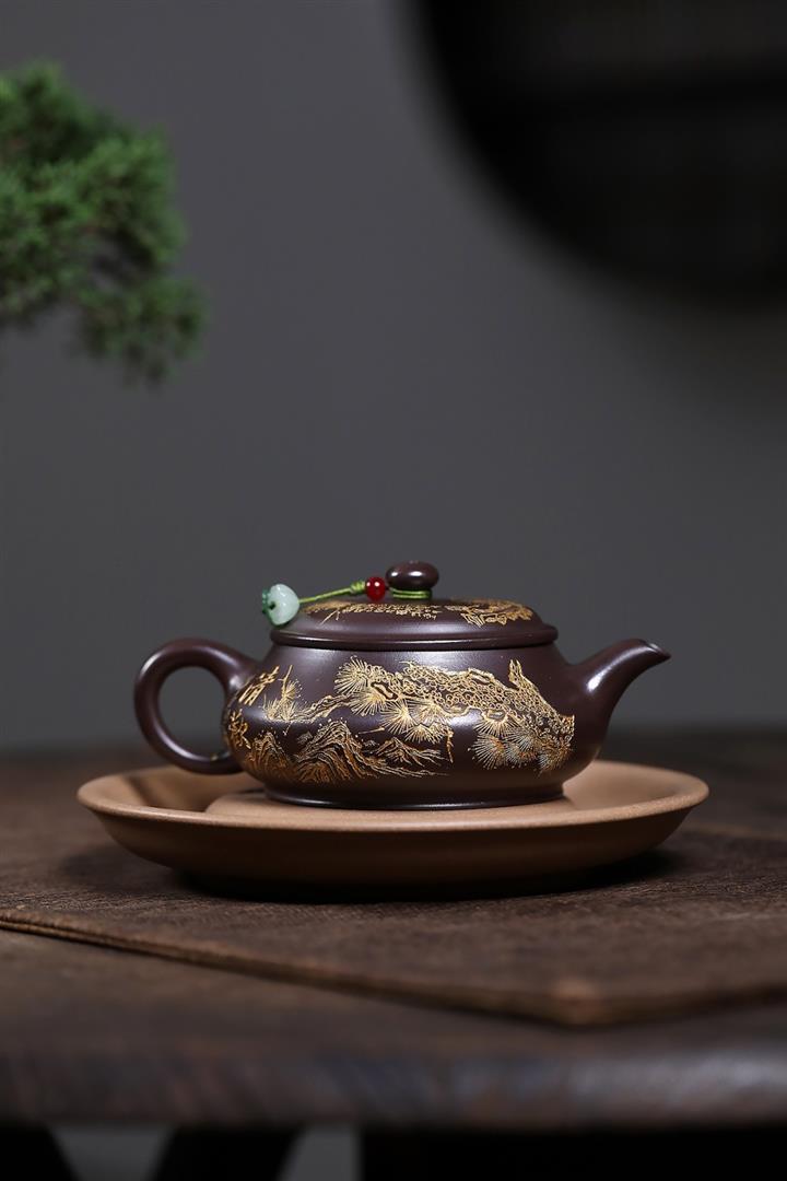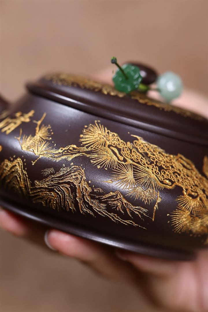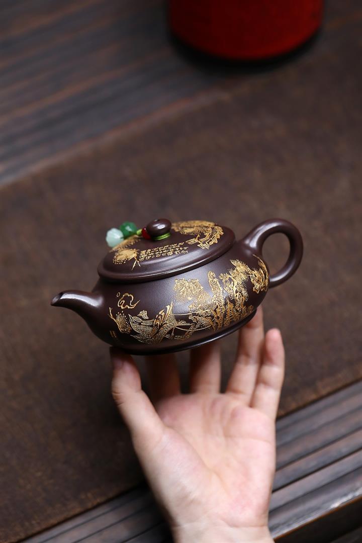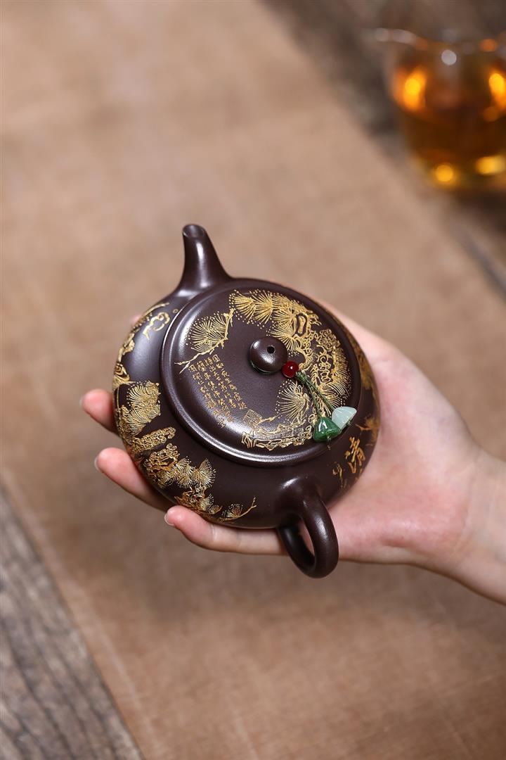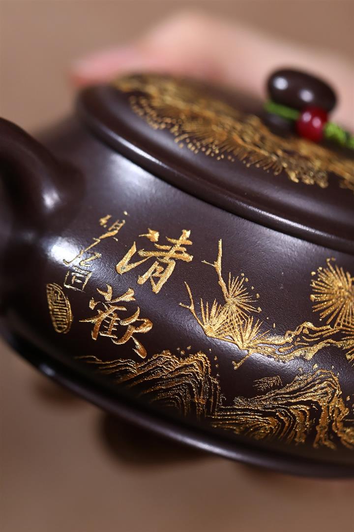 原礦紫泥刻繪石瓢紫砂壺POT4752