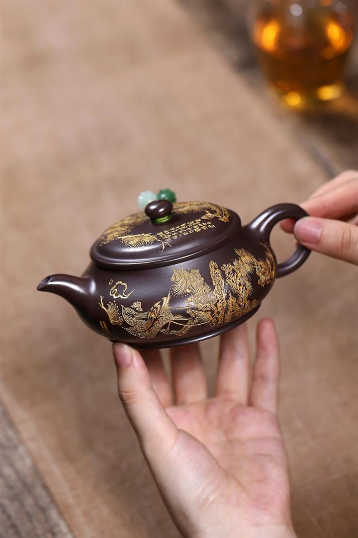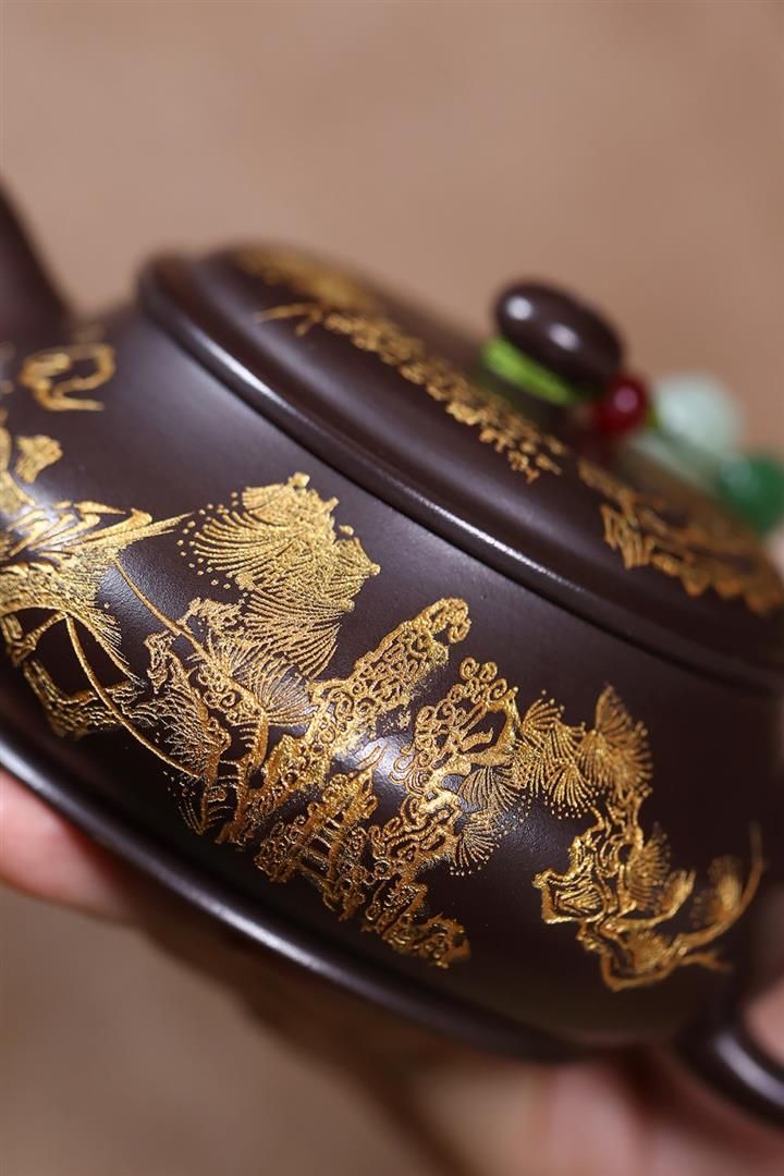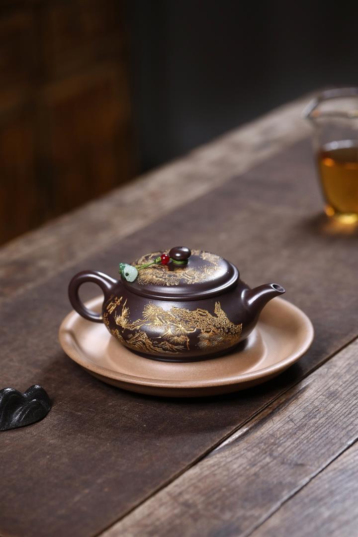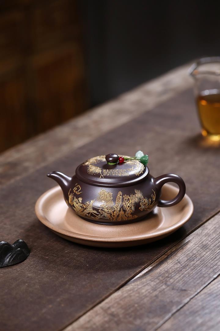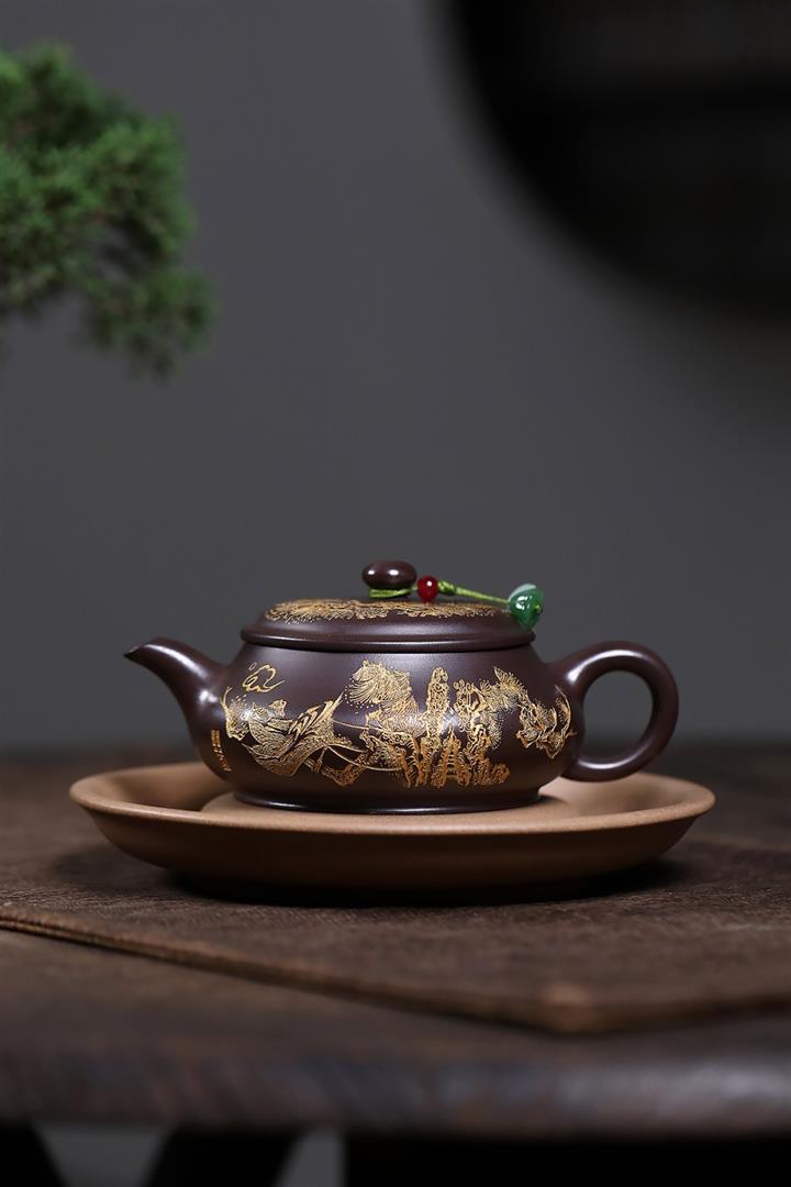 原礦紫泥刻繪石瓢紫砂壺POT4752