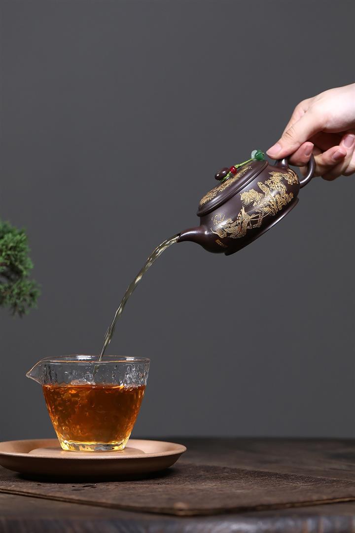 【泥料特點】砂土氣重,似淳實農民,日久使用,漸露鋒芒,養成變化,溫潤莊重。紫砂是壹種雙重氣孔結構的多孔性材質,氣孔微細,密度高。用紫砂壺沏茶,不失原味,且香不渙散,得茶之真香真味。紫砂使用越久,壺身色澤越發光亮照人,氣韻溫雅。紫砂壺長久使用器身會因撫摸擦拭,變得越發溫潤光澤。