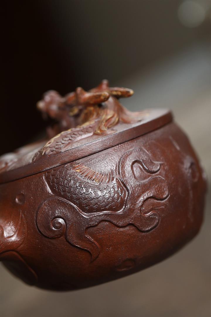 原礦紫泥唐羽-龍潛淵隱龍供春茶壺POT7906