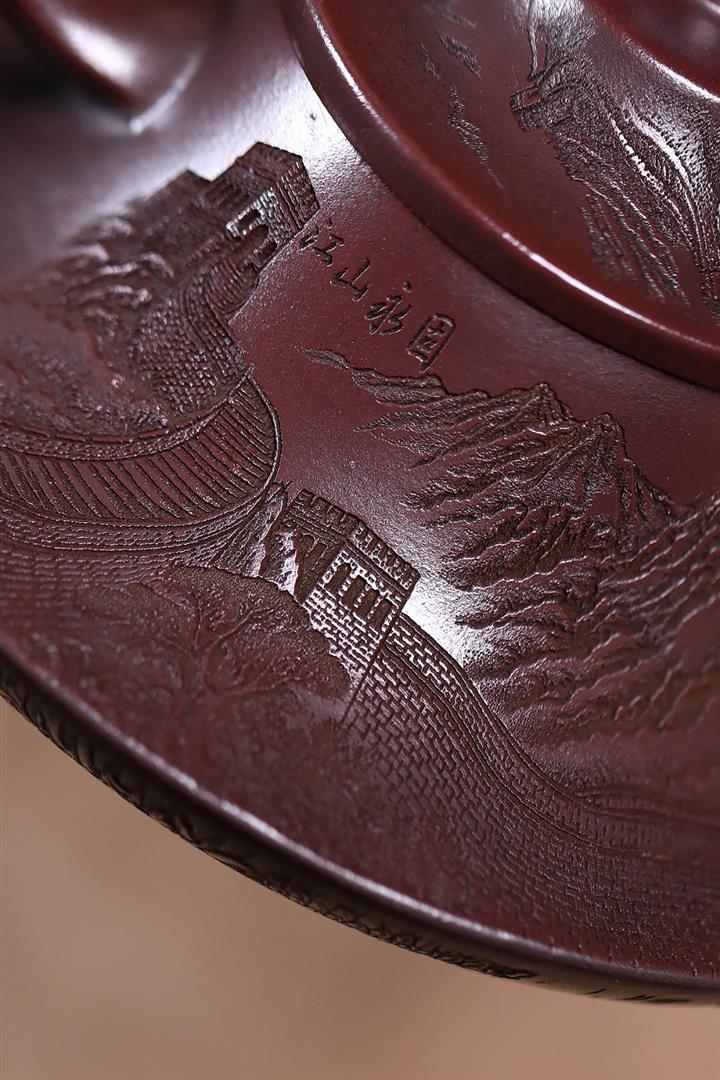 320cc原礦古烏泥通身滿刻龍騰四海茶壺POT7918
