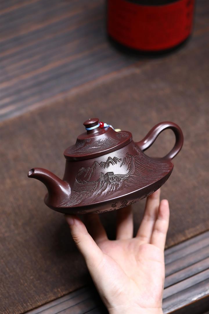 【作品介紹】此款壺形線條流暢,壺把,壺嘴,壺身壹氣呵成栩栩如生,是收藏把玩的好壺,泥料色澤古樸典雅,日久使用,漸露鋒芒,養成變化快,溫潤莊重,用其泡茶,使用的年代久,壺身就溫潤,泡出來的茶湯也就醇郁芳馨。