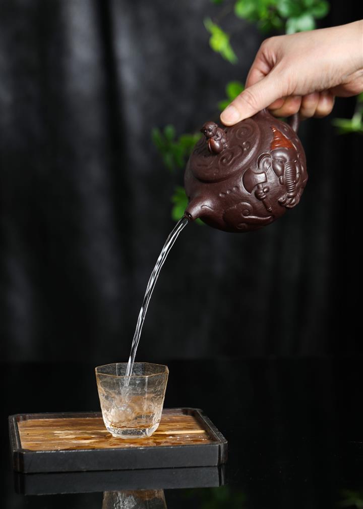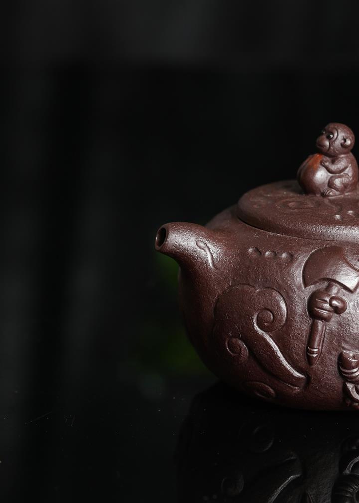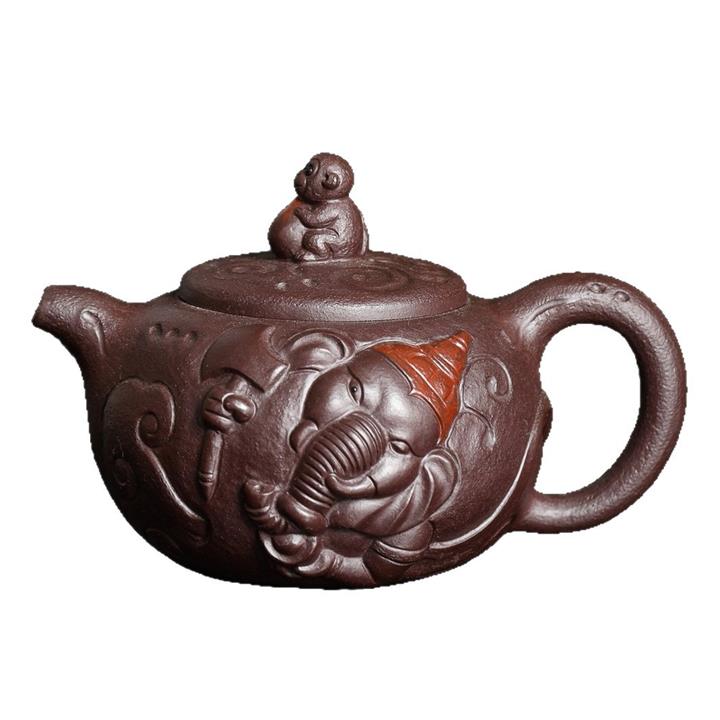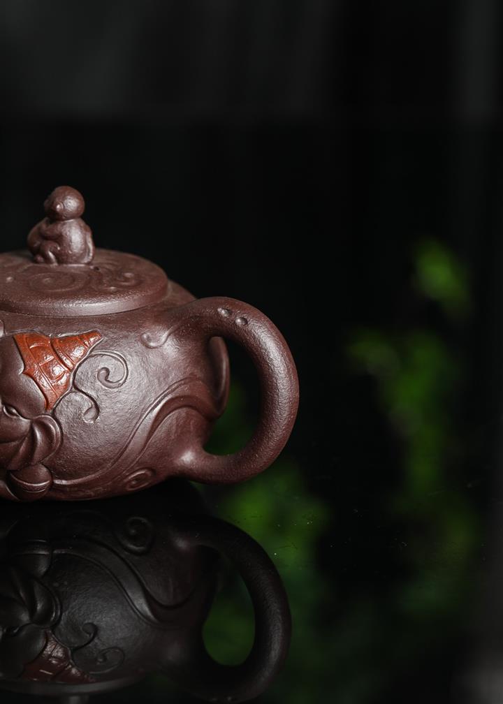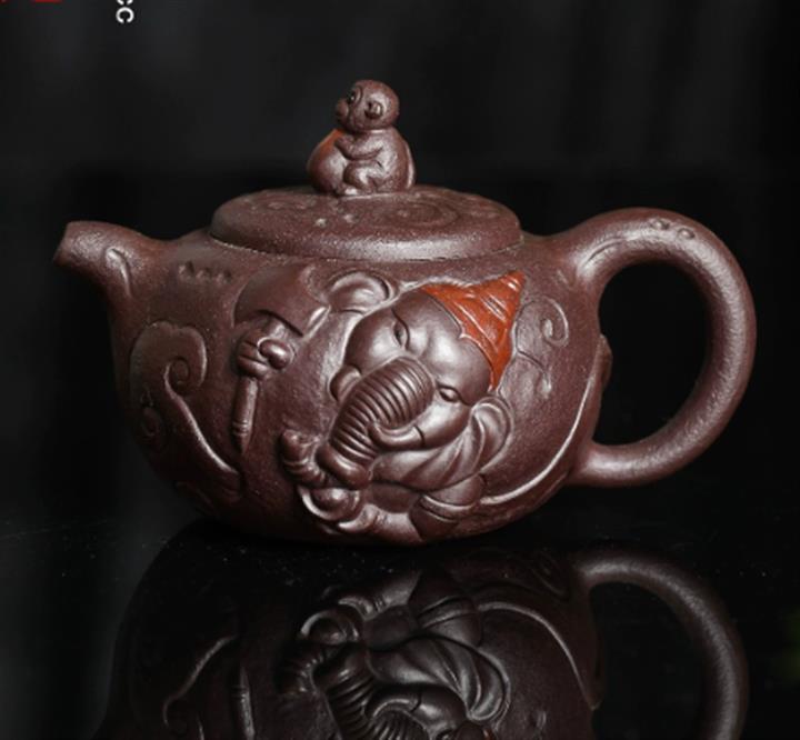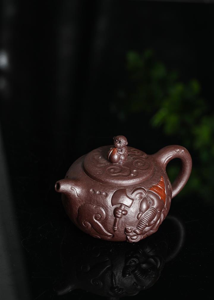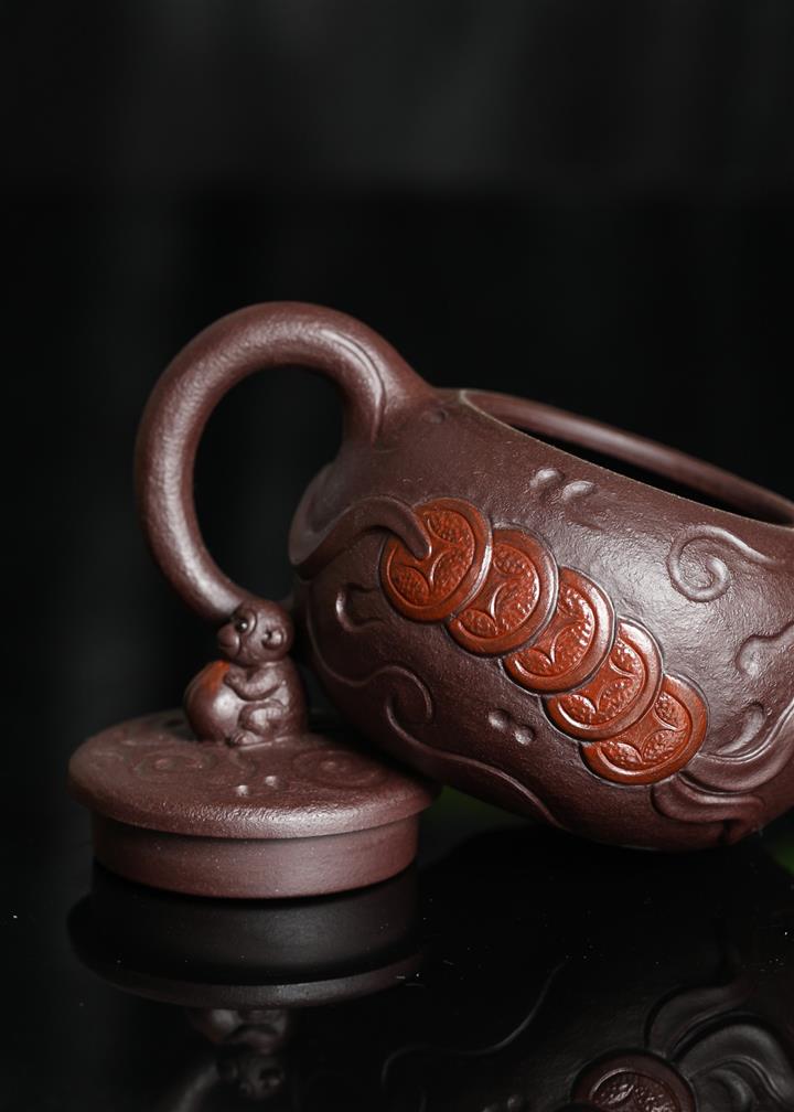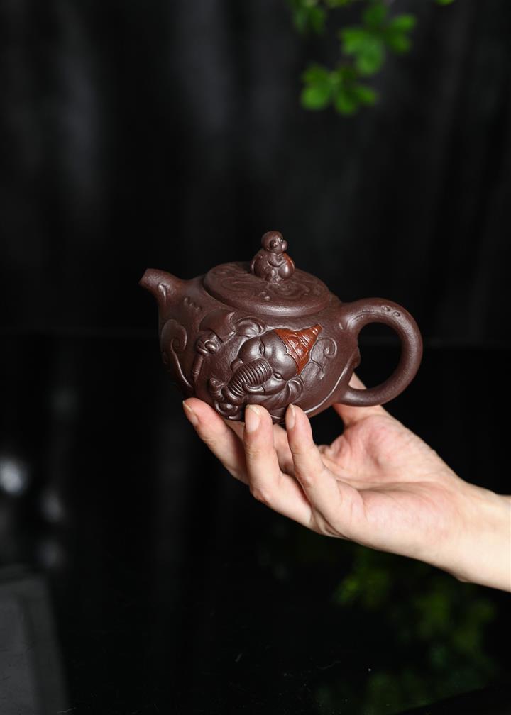 150cc原礦紫泥手工刻繪八方來財茶壺POT8465