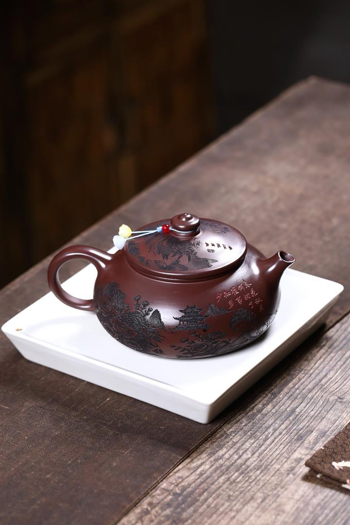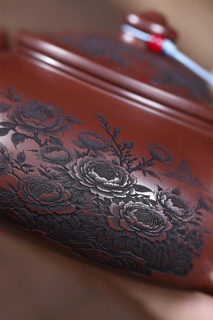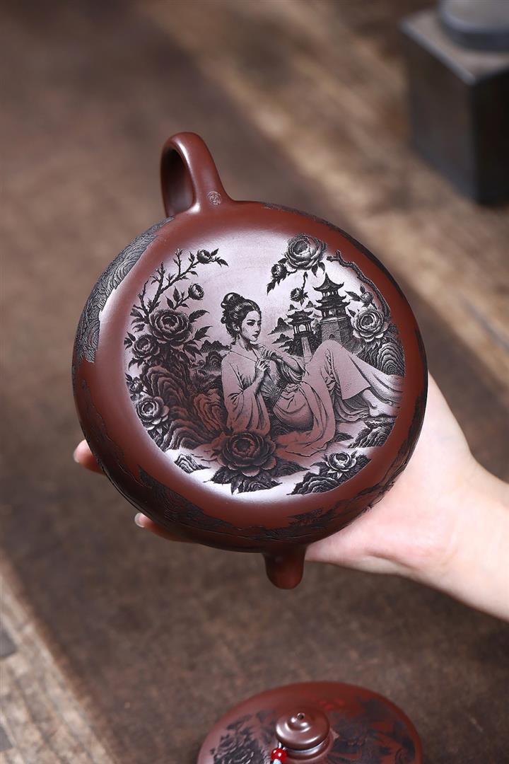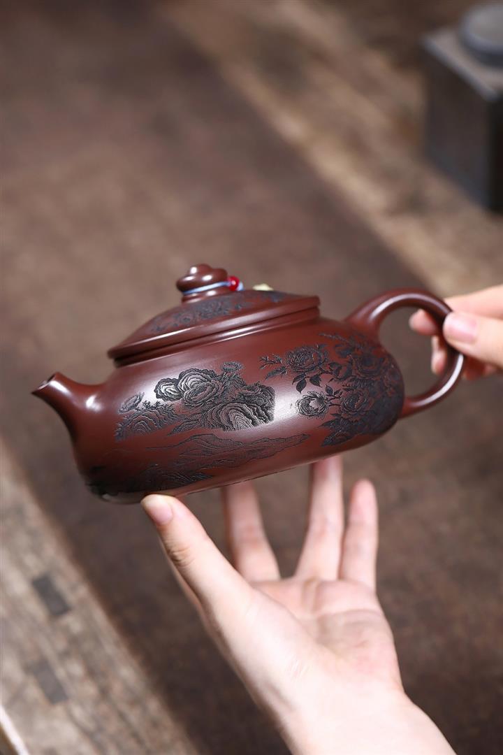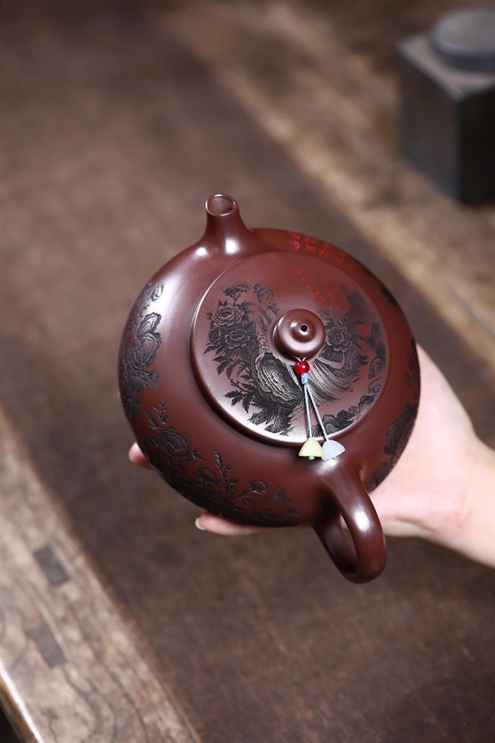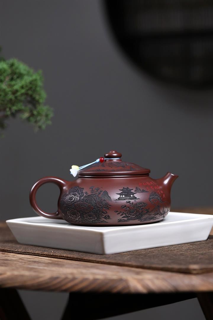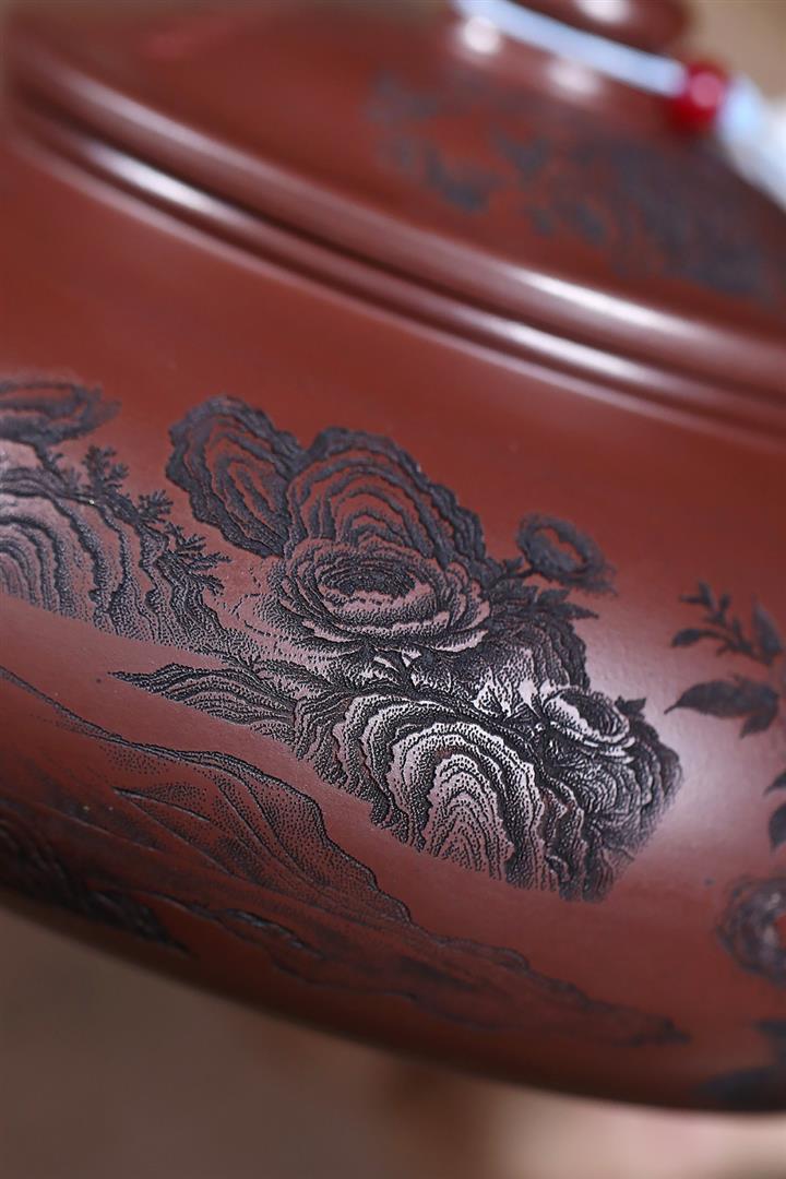 原礦朱泥純手工刻繪石瓢紫砂壺POT4317