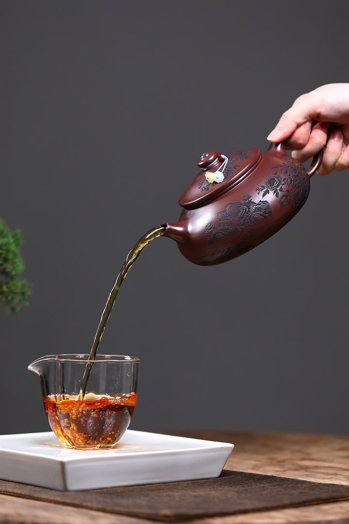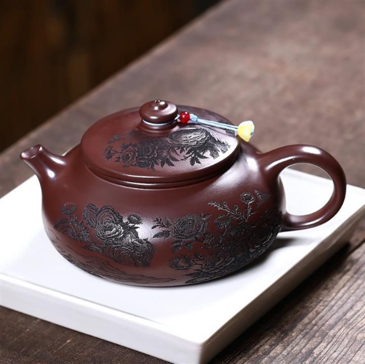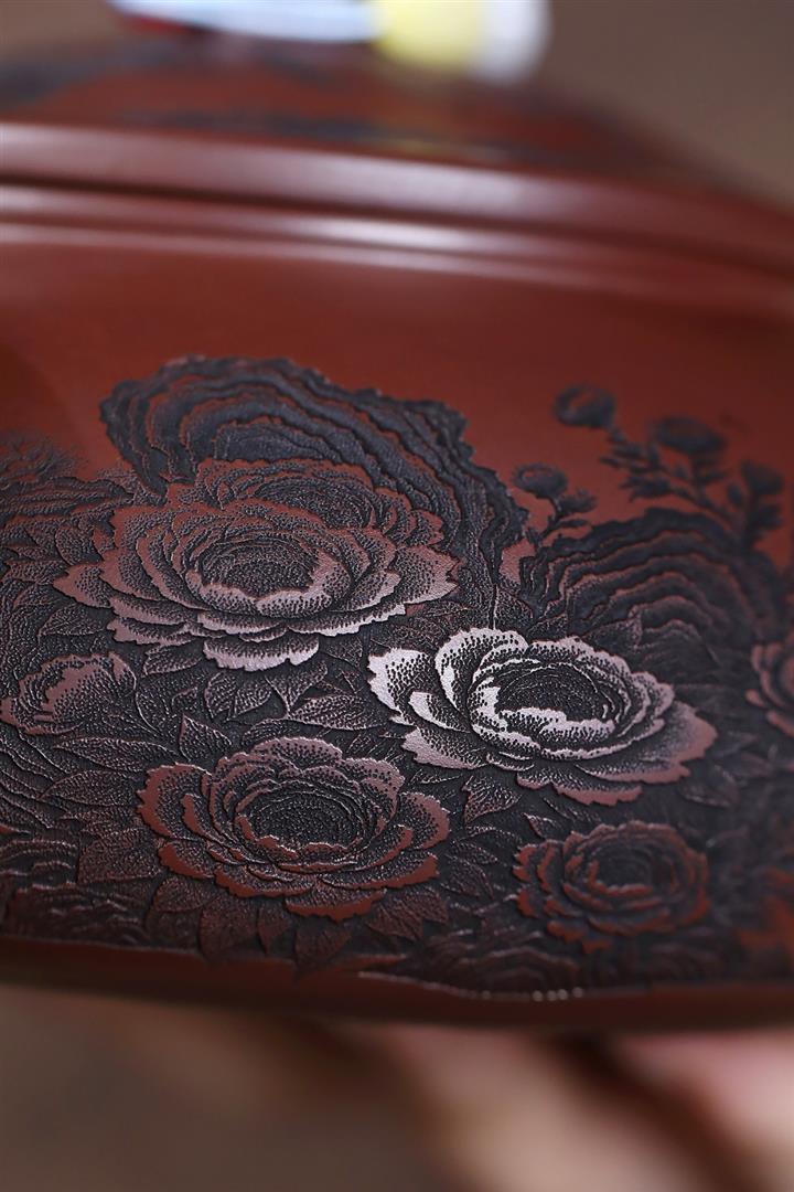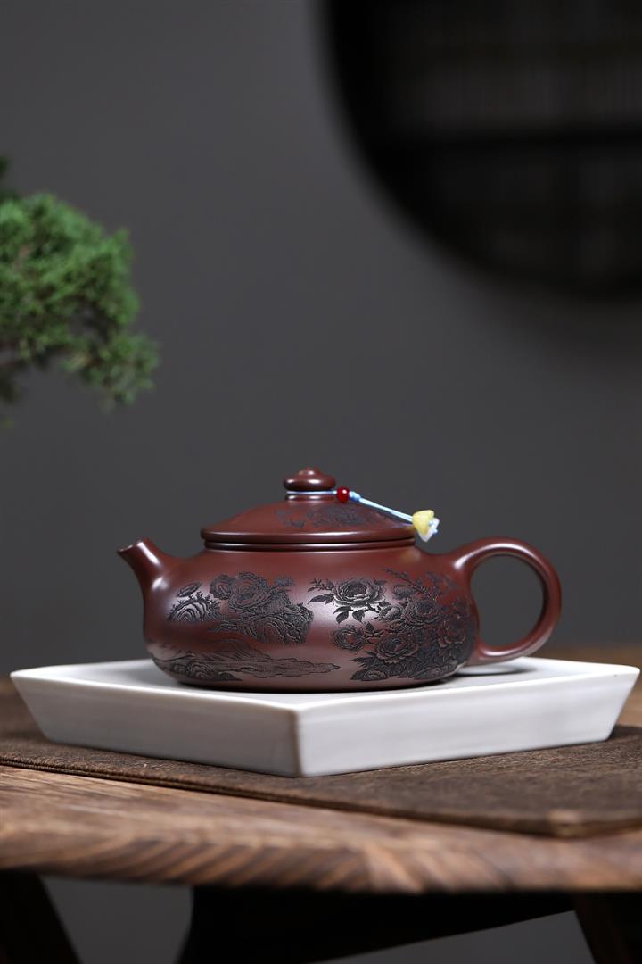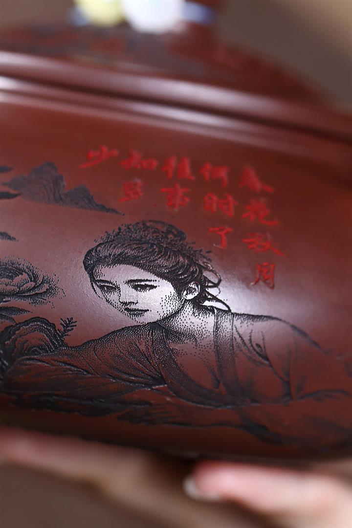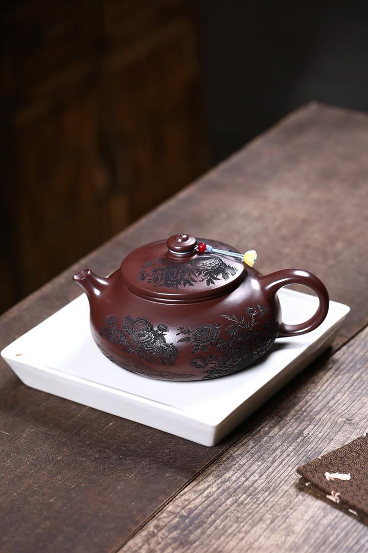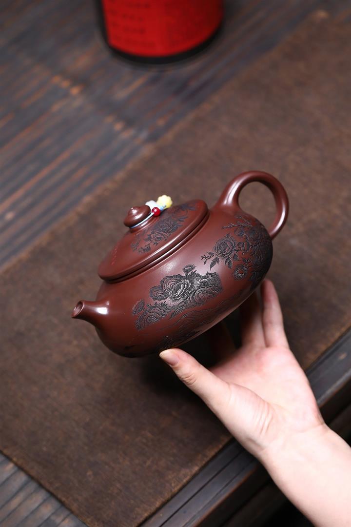 原礦朱泥純手工刻繪石瓢紫砂壺POT4317