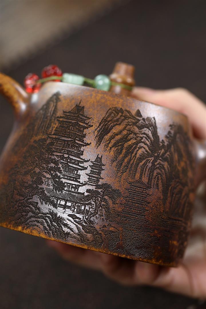 400cc原礦龍骨金砂柴燒觀樓漢鐸茶壺POT7978