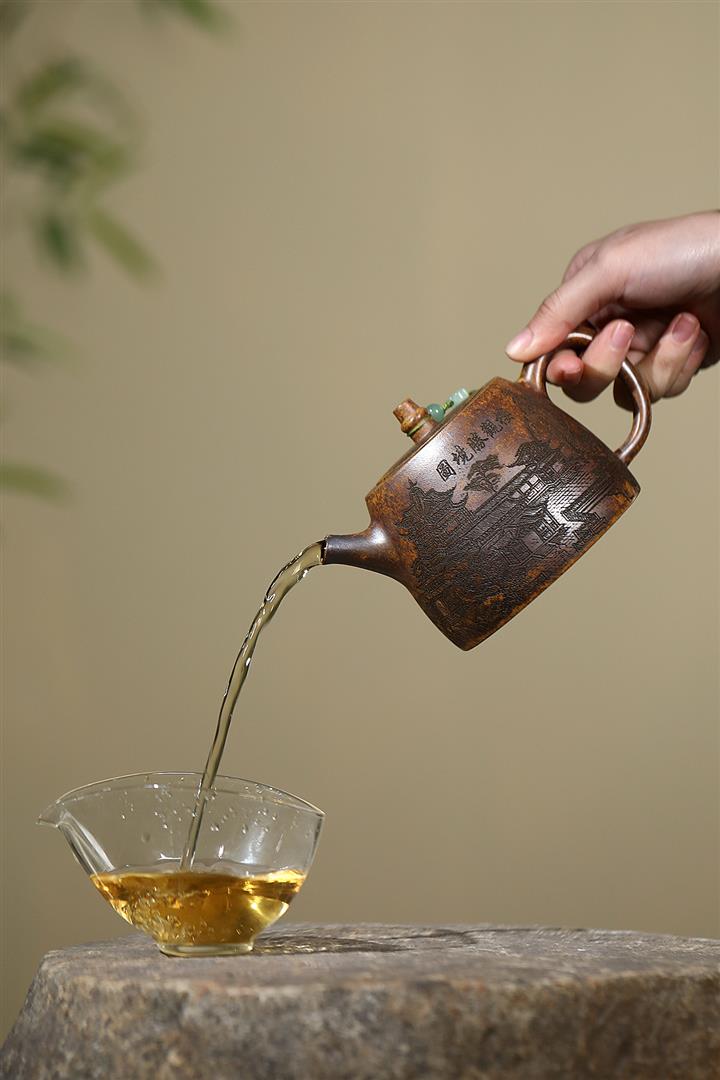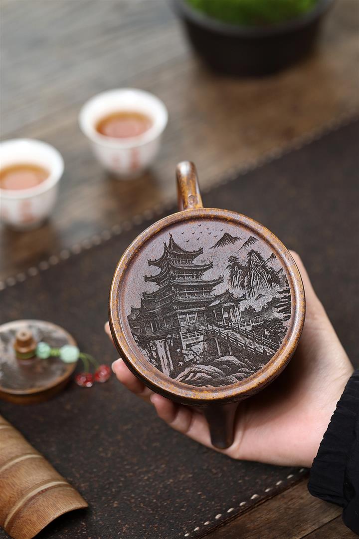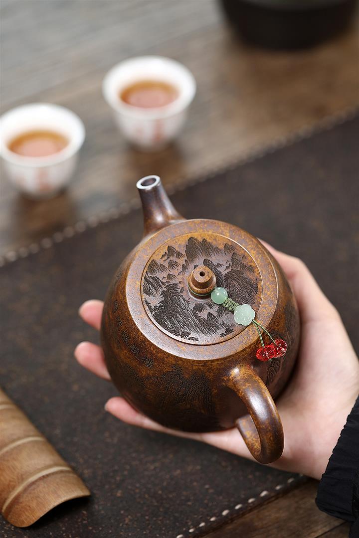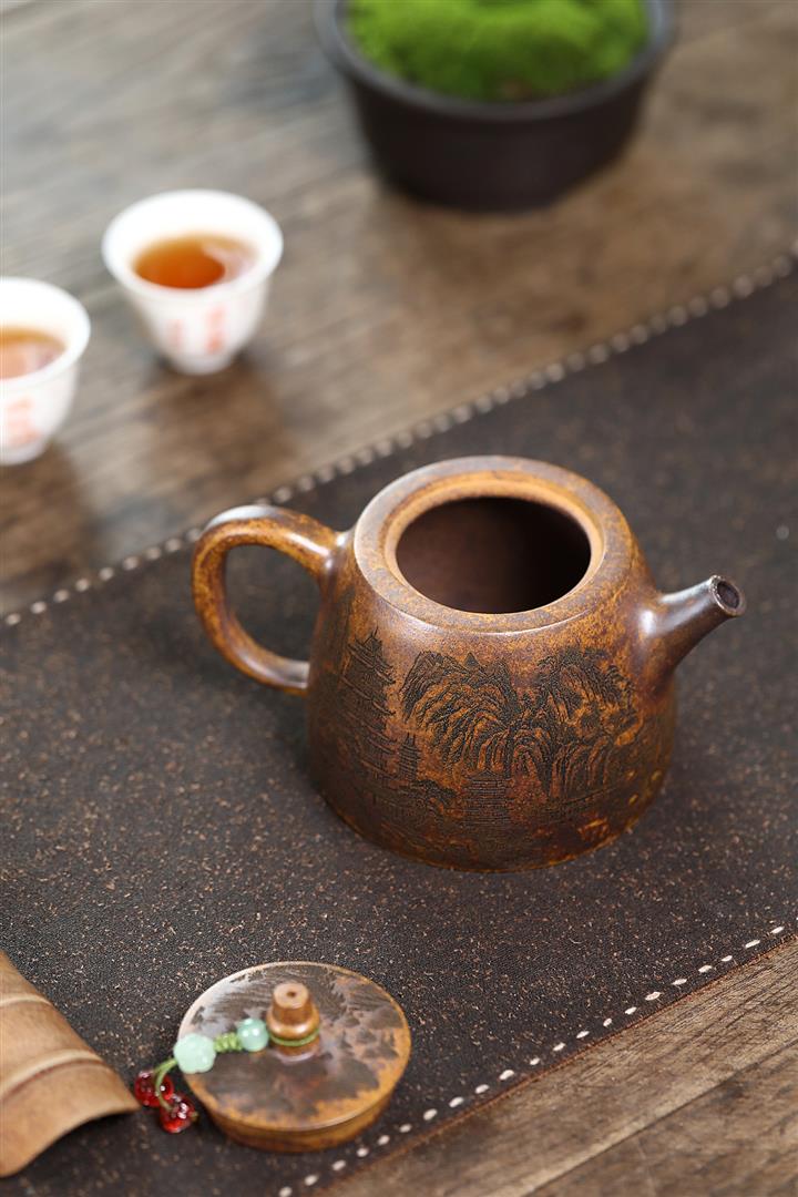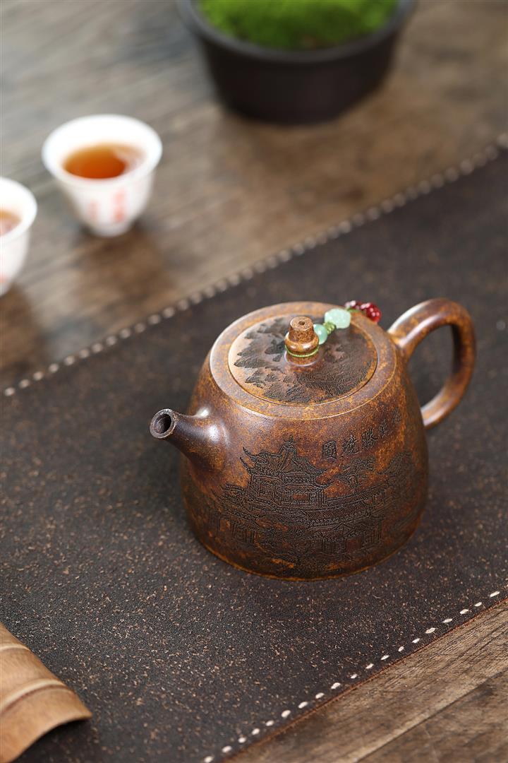【泥料特點】砂土氣重,似淳實農民,日久使用,漸露鋒芒,養成變化,溫潤莊重。紫砂是壹種雙重氣孔結構的多孔性材質,氣孔微細,密度高。用紫砂壺沏茶,不失原味,且香不渙散,得茶之真香真味。紫砂使用越久,壺身色澤越發光亮照人,氣韻溫雅。紫砂壺長久使用器身會因撫摸擦拭,變得越發溫潤光澤。