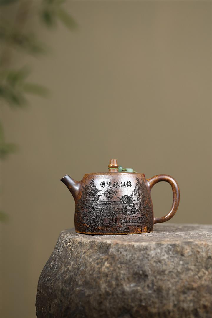 原礦紫泥描金曲壺POT4671