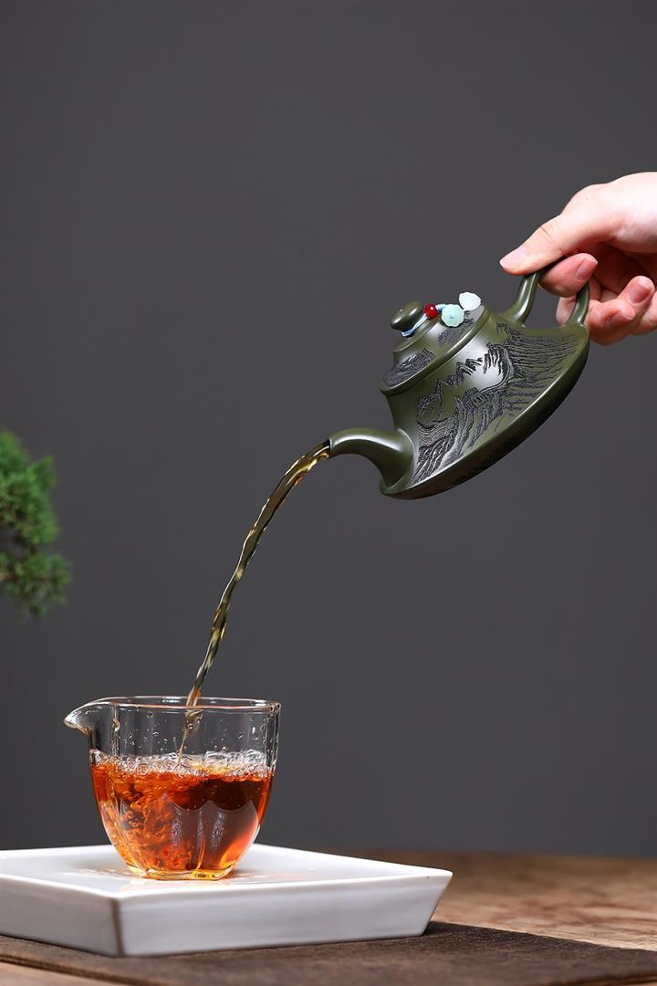 【作品介紹】此款壺形線條流暢,壺把,壺嘴,壺身壹氣呵成栩栩如生,是收藏把玩的好壺,泥料色澤古樸典雅,日久使用,漸露鋒芒,養成變化快,溫潤莊重,用其泡茶,使用的年代久,壺身就溫潤,泡出來的茶湯也就醇郁芳馨。