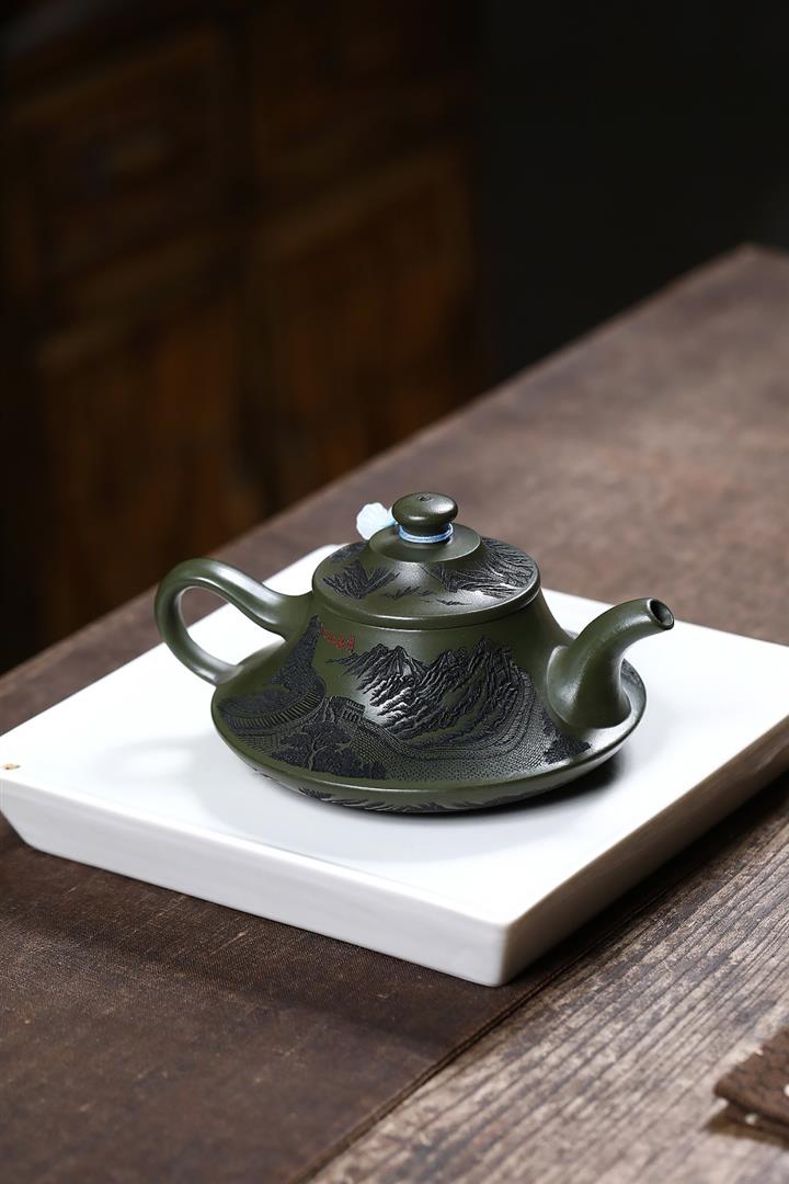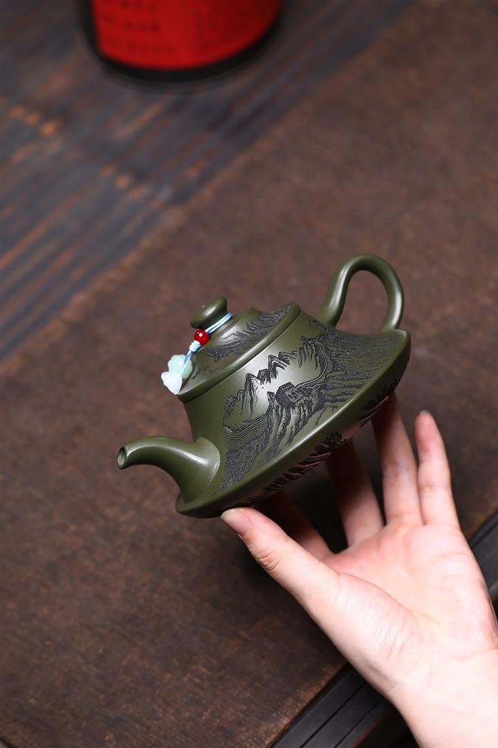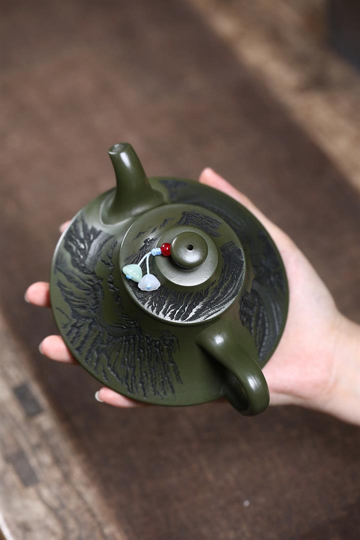250cc原礦綠泥山高路遠雲爐茶壺POT7980