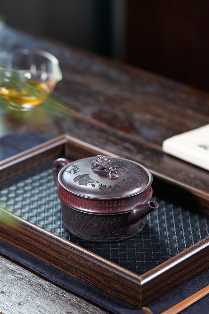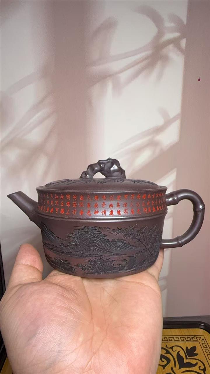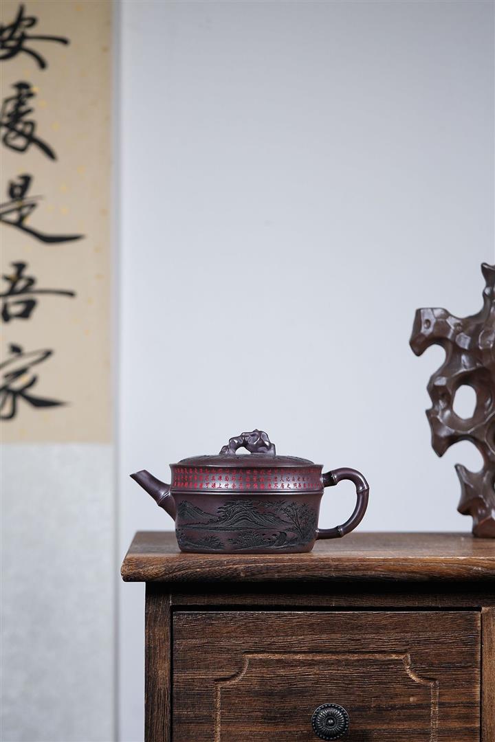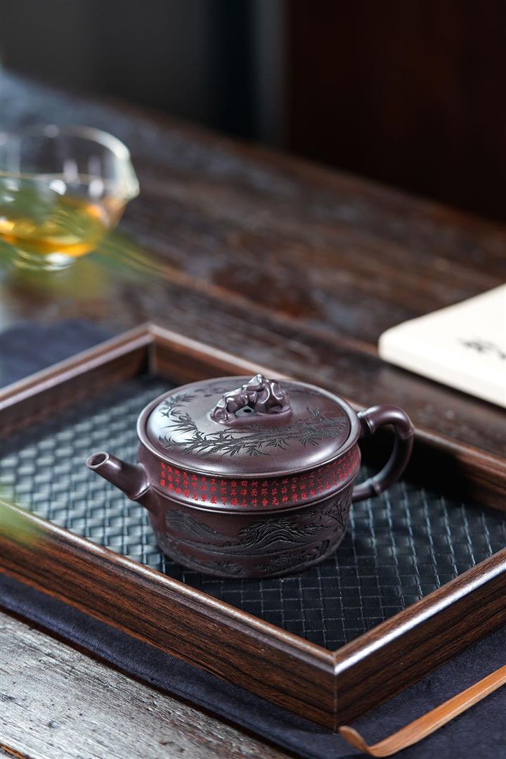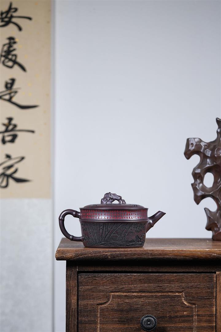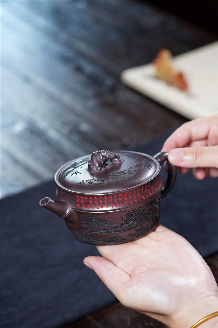 原礦紫泥刻繪龍行天下茶壺POT7483