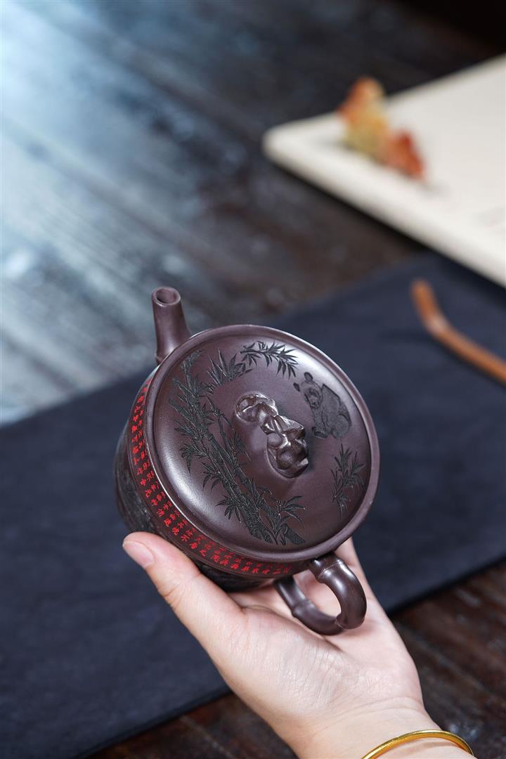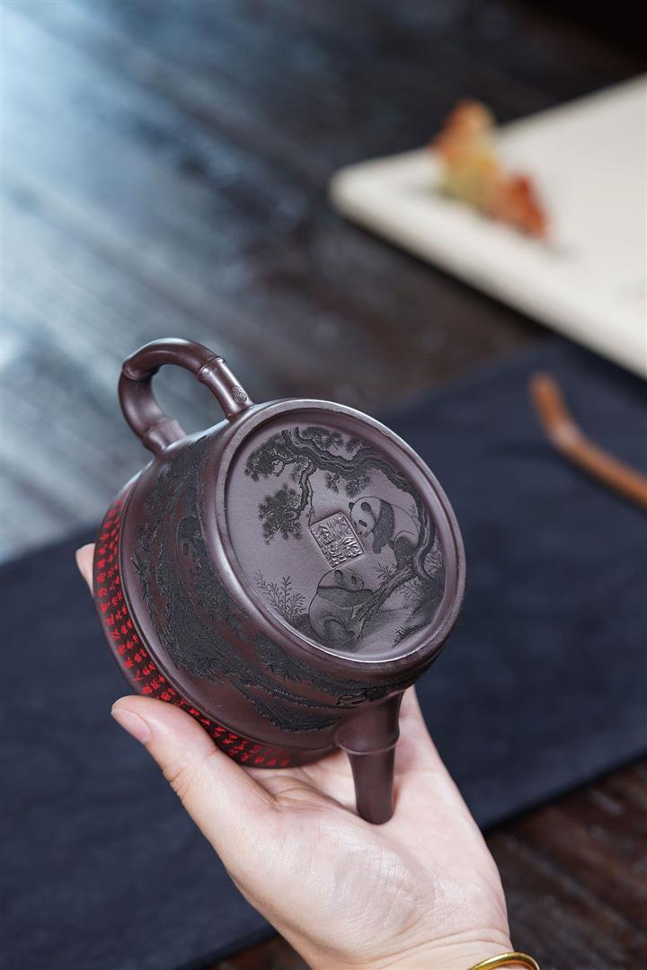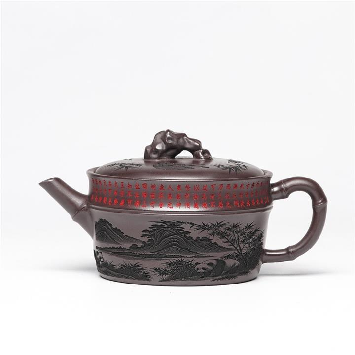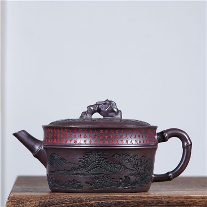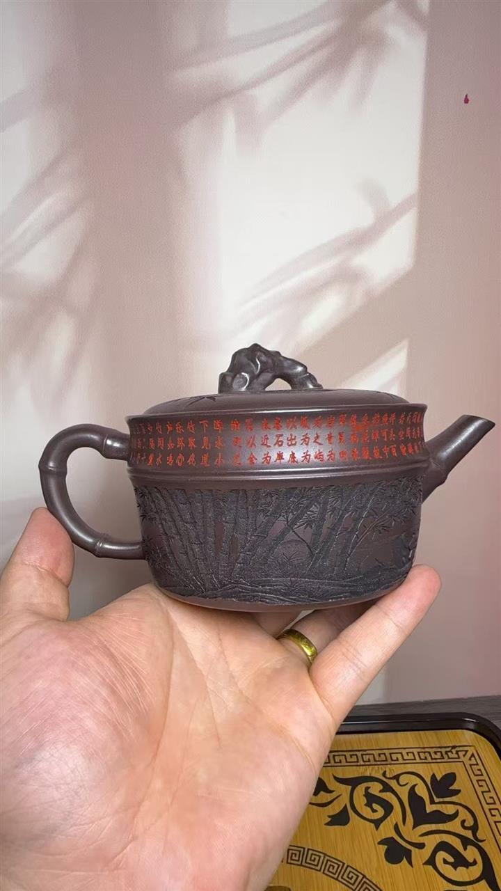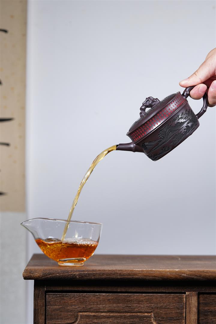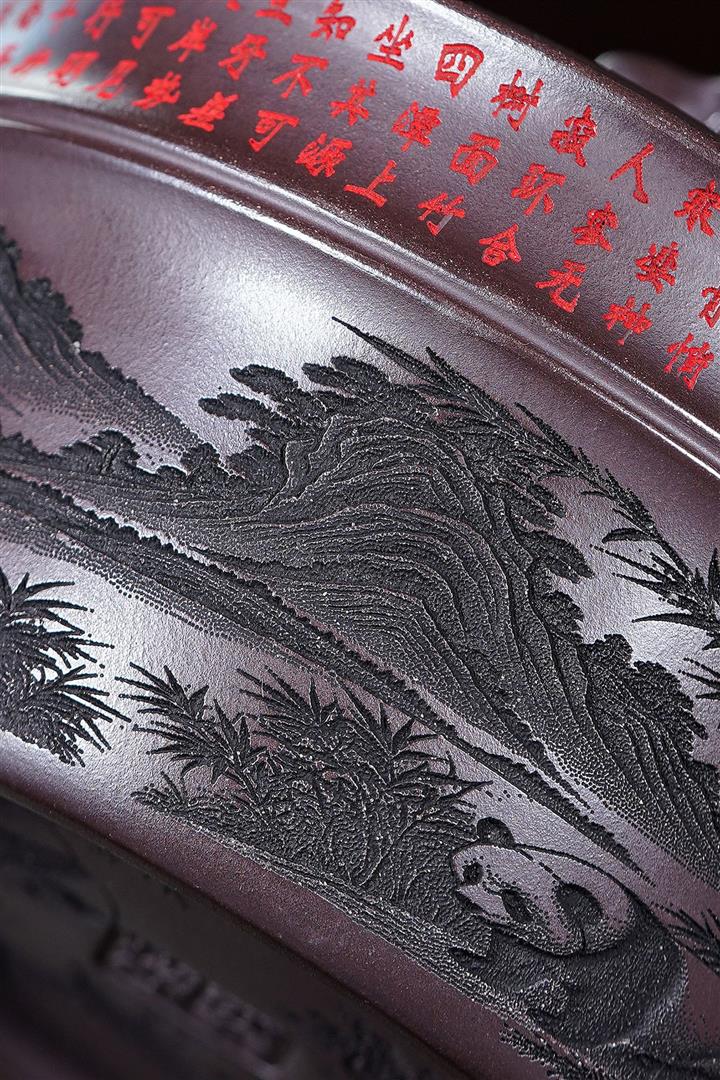 原礦紫泥刻繪龍行天下茶壺POT7483