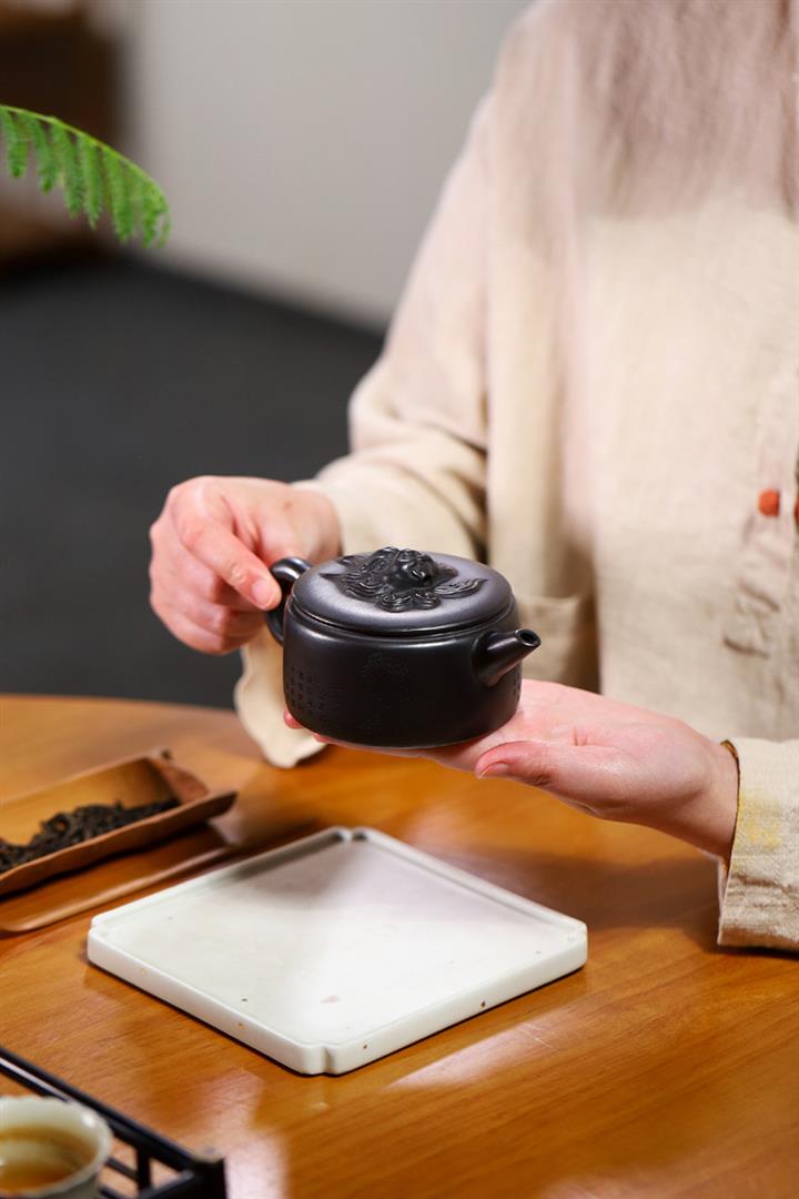 【泥料特點】砂土氣重,似淳實農民,日久使用,漸露鋒芒,養成變化,溫潤莊重。紫砂是壹種雙重氣孔結構的多孔性材質,氣孔微細,密度高。用紫砂壺沏茶,不失原味,且香不渙散,得茶之真香真味。紫砂使用越久,壺身色澤越發光亮照人,氣韻溫雅。紫砂壺長久使用器身會因撫摸擦拭,變得越發溫潤光澤。