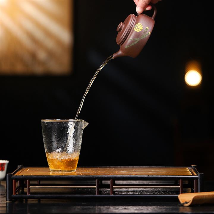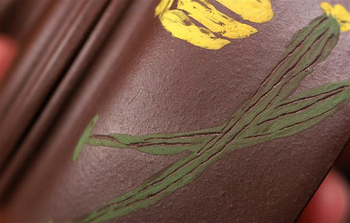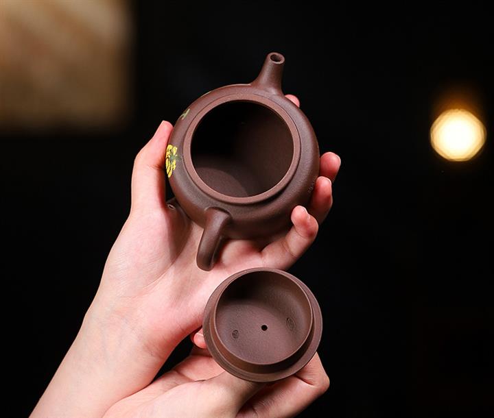 【泥料特點】砂土氣重,似淳實農民,日久使用,漸露鋒芒,養成變化,溫潤莊重。紫砂是壹種雙重氣孔結構的多孔性材質,氣孔微細,密度高。用紫砂壺沏茶,不失原味,且香不渙散,得茶之真香真味。紫砂使用越久,壺身色澤越發光亮照人,氣韻溫雅。紫砂壺長久使用器身會因撫摸擦拭,變得越發溫潤光澤。
