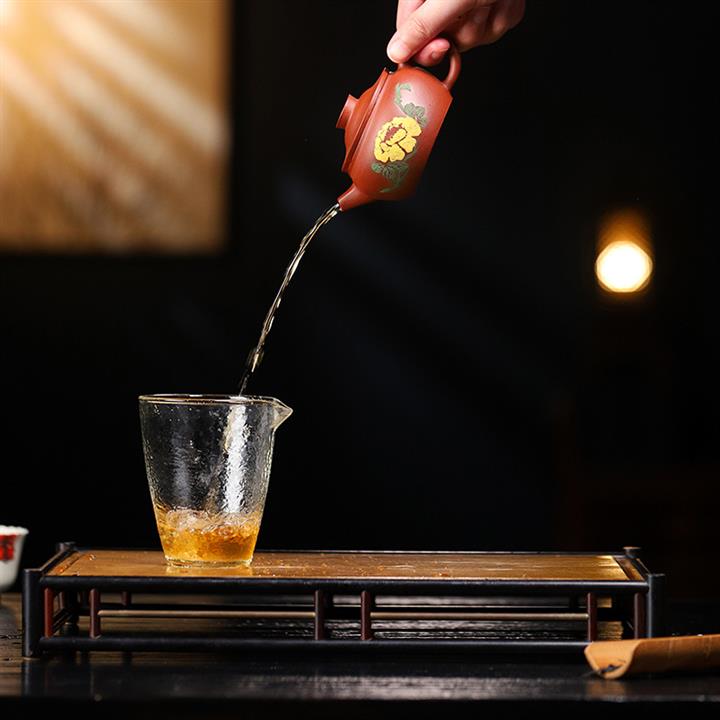 【泥料特點】砂土氣重,似淳實農民,日久使用,漸露鋒芒,養成變化,溫潤莊重。紫砂是壹種雙重氣孔結構的多孔性材質,氣孔微細,密度高。用紫砂壺沏茶,不失原味,且香不渙散,得茶之真香真味。紫砂使用越久,壺身色澤越發光亮照人,氣韻溫雅。紫砂壺長久使用器身會因撫摸擦拭,變得越發溫潤光澤。