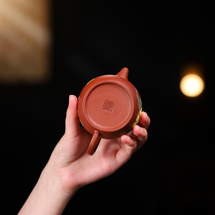 150cc原礦老紫泥金玉滿堂炮嘴漢瓦壺POT8795